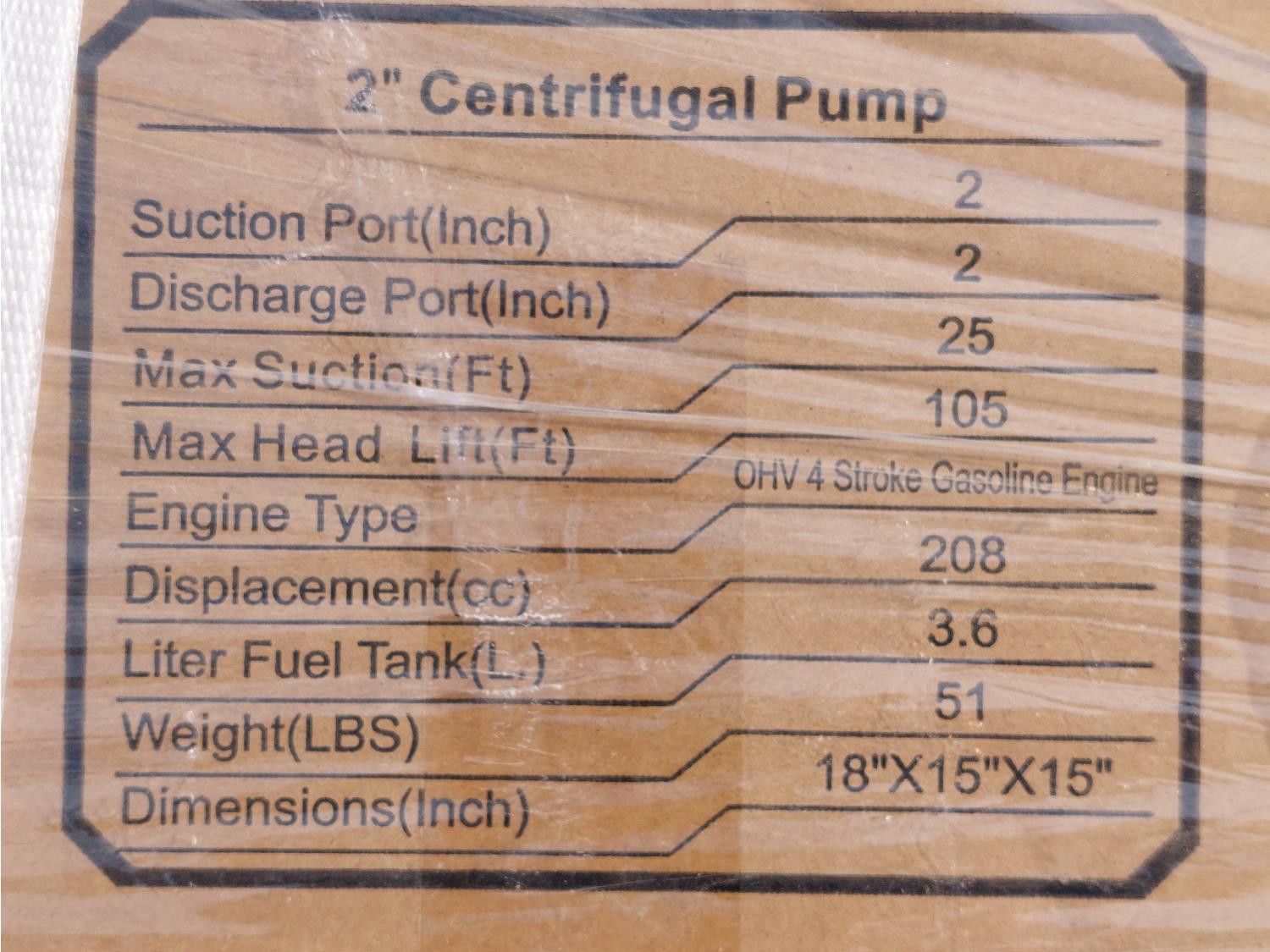 1216 Powertek Pt50c 2 Inch Trash Pump (Unused)