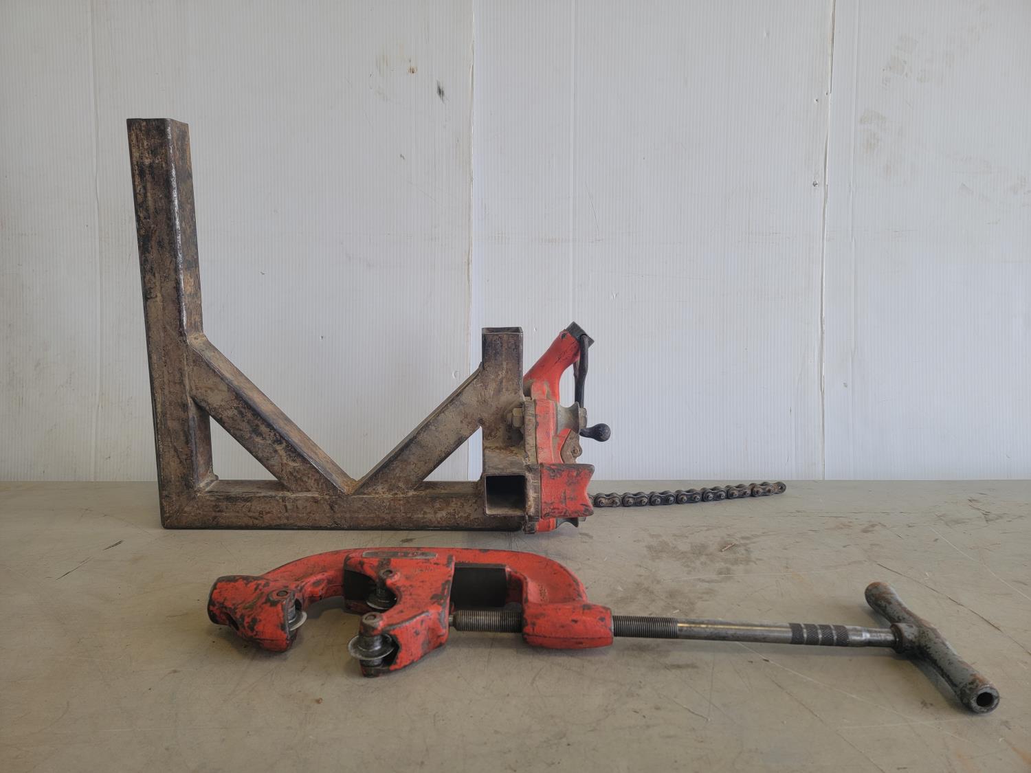 5095 Ridgid BC-410 1/8 Inch to 4 Inch Hitch Mount Pipe Vise and Ridgid 4-S 2 to 4 Inch Pipe Cutter