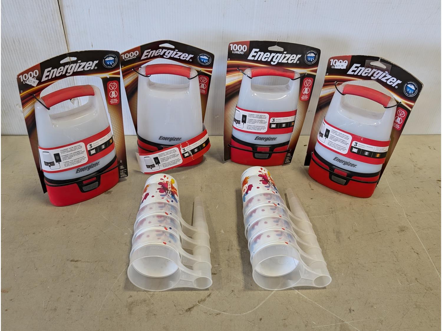 5184 (4) Energizer 1000 Lumen Battery Powered Lanterns and (9) Stack-Cups (Unused)