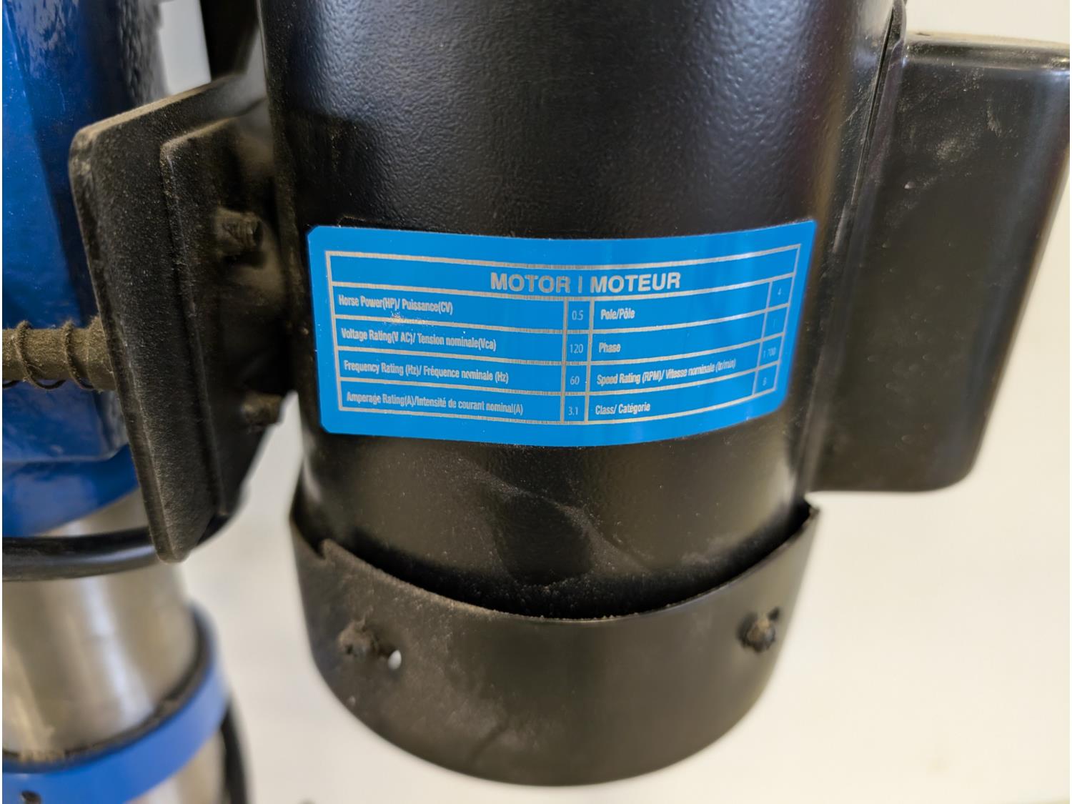 1/2 HP, 120V, single phase, 1700 RPM