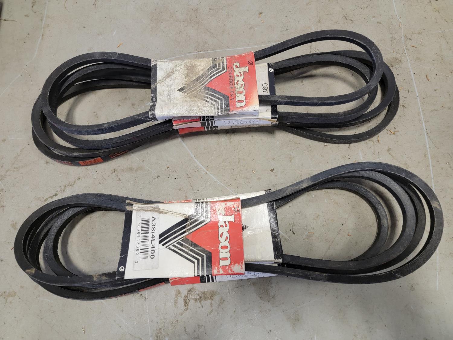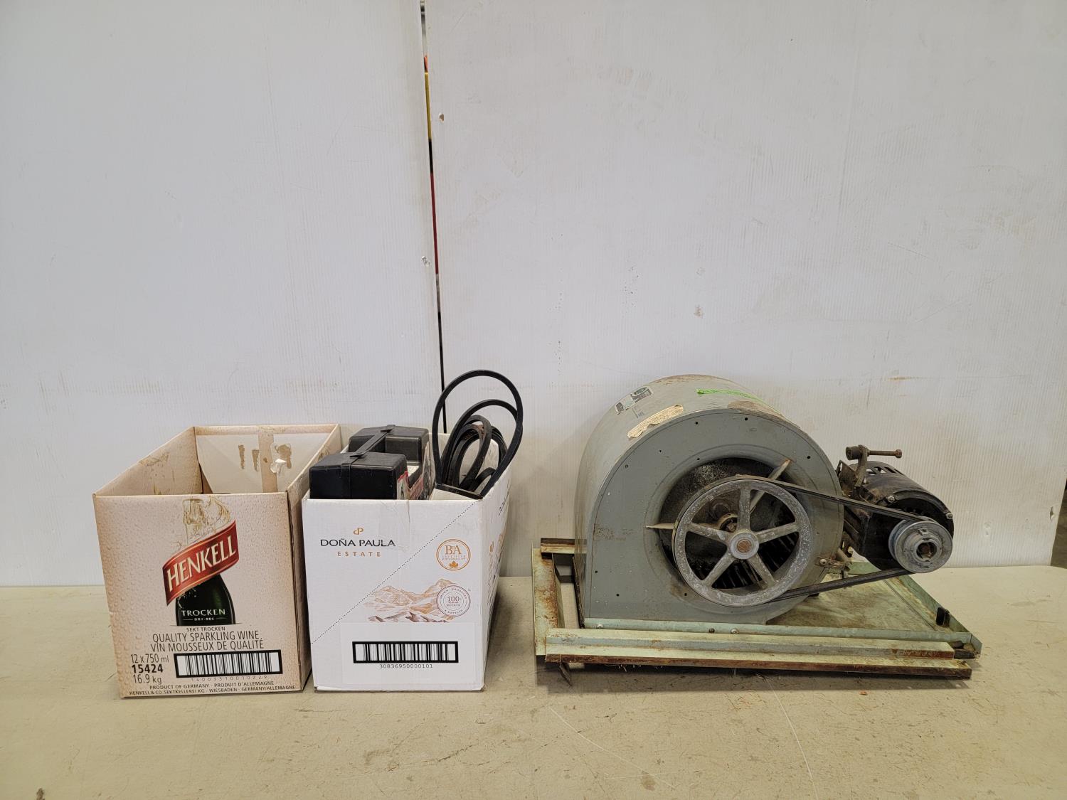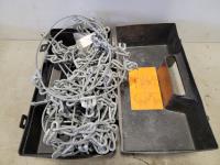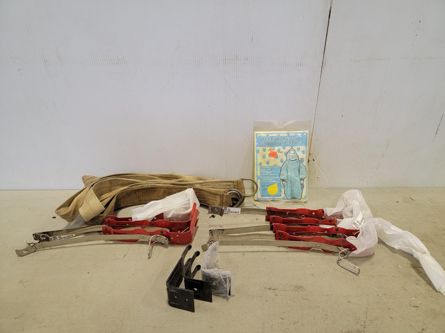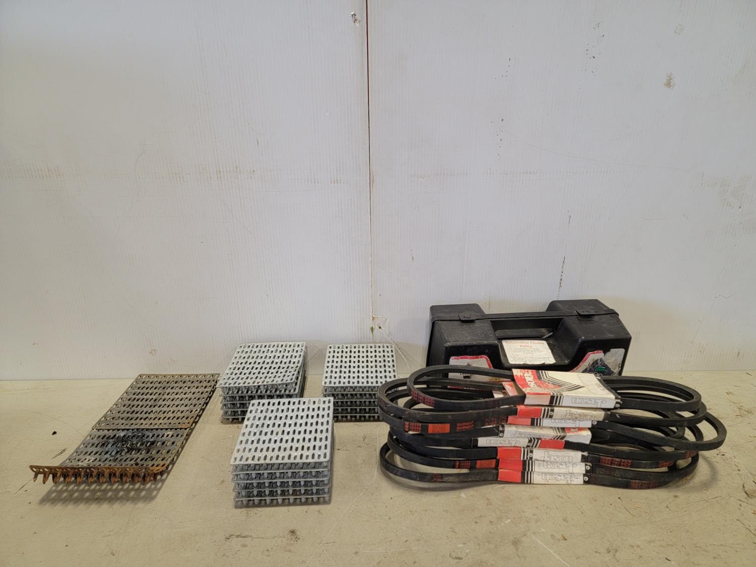 15 inch blower fan (needs plug), galvanized truss connector plates, radial tire chains, fire extinguisher mounts, short slings, assorted v-belts