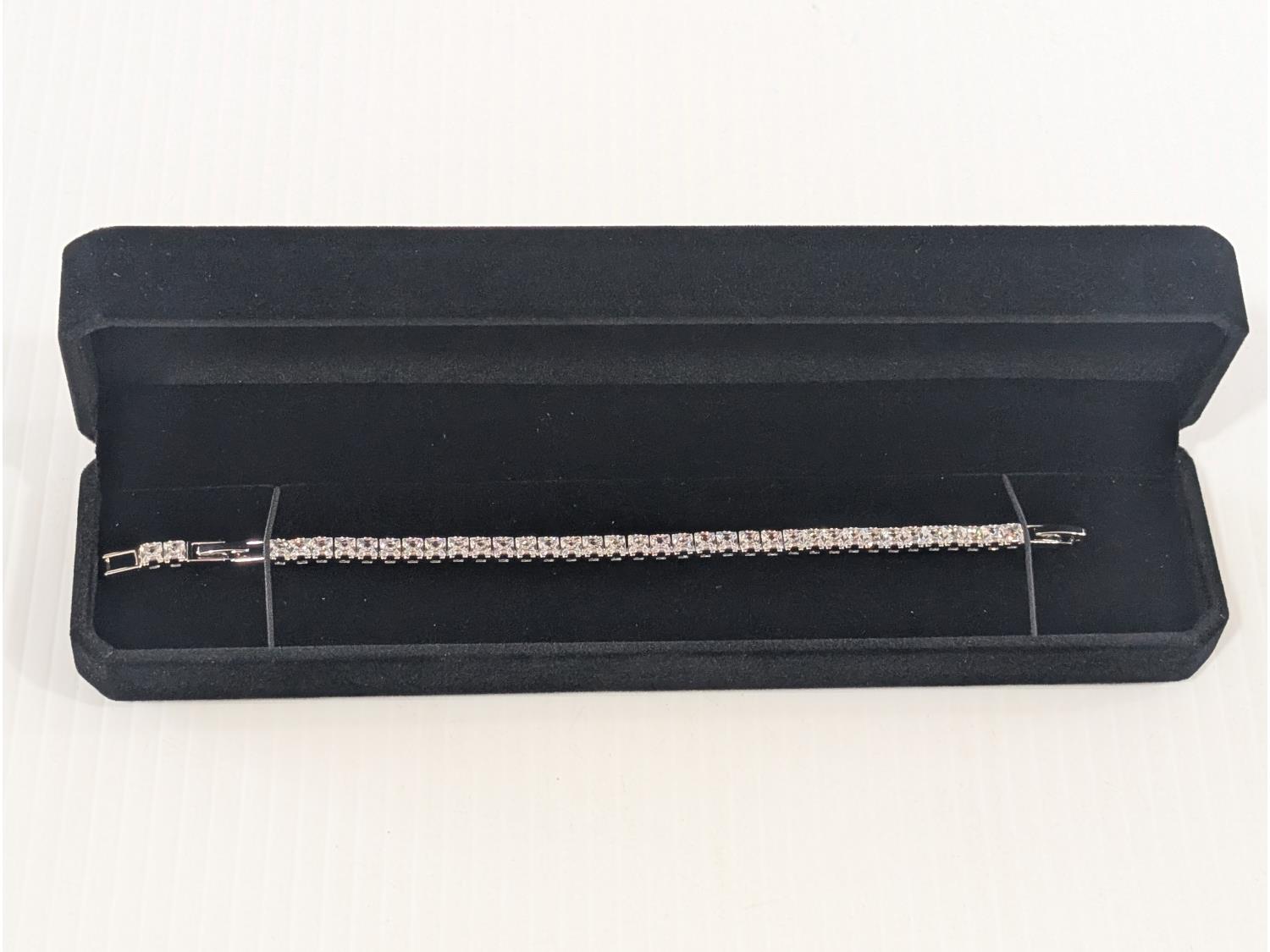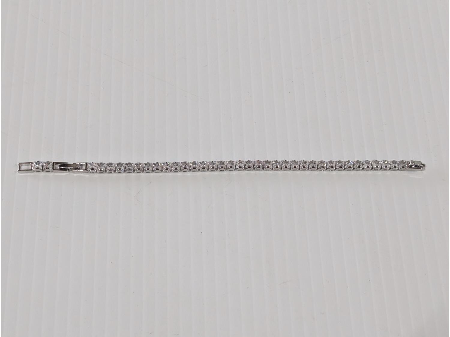 5020 Smartlife Platinum Plated 4.0 mm Princess Cut Tennis Bracelet - Adjustable 7 Inch to 8 Inch Long (Unused)