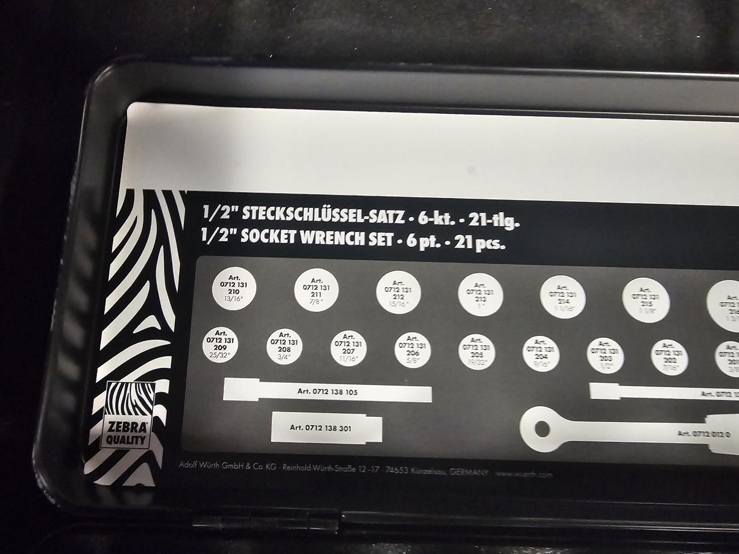 5686 Wurth 1/2 Socket Set (Unused)