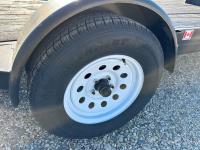 70 inch wide deck, wood deck, stand up ramps, electric brakes, spring suspension, ball hitch, tool / storage box, rub rails, stake pockets, 205/75R15 tires