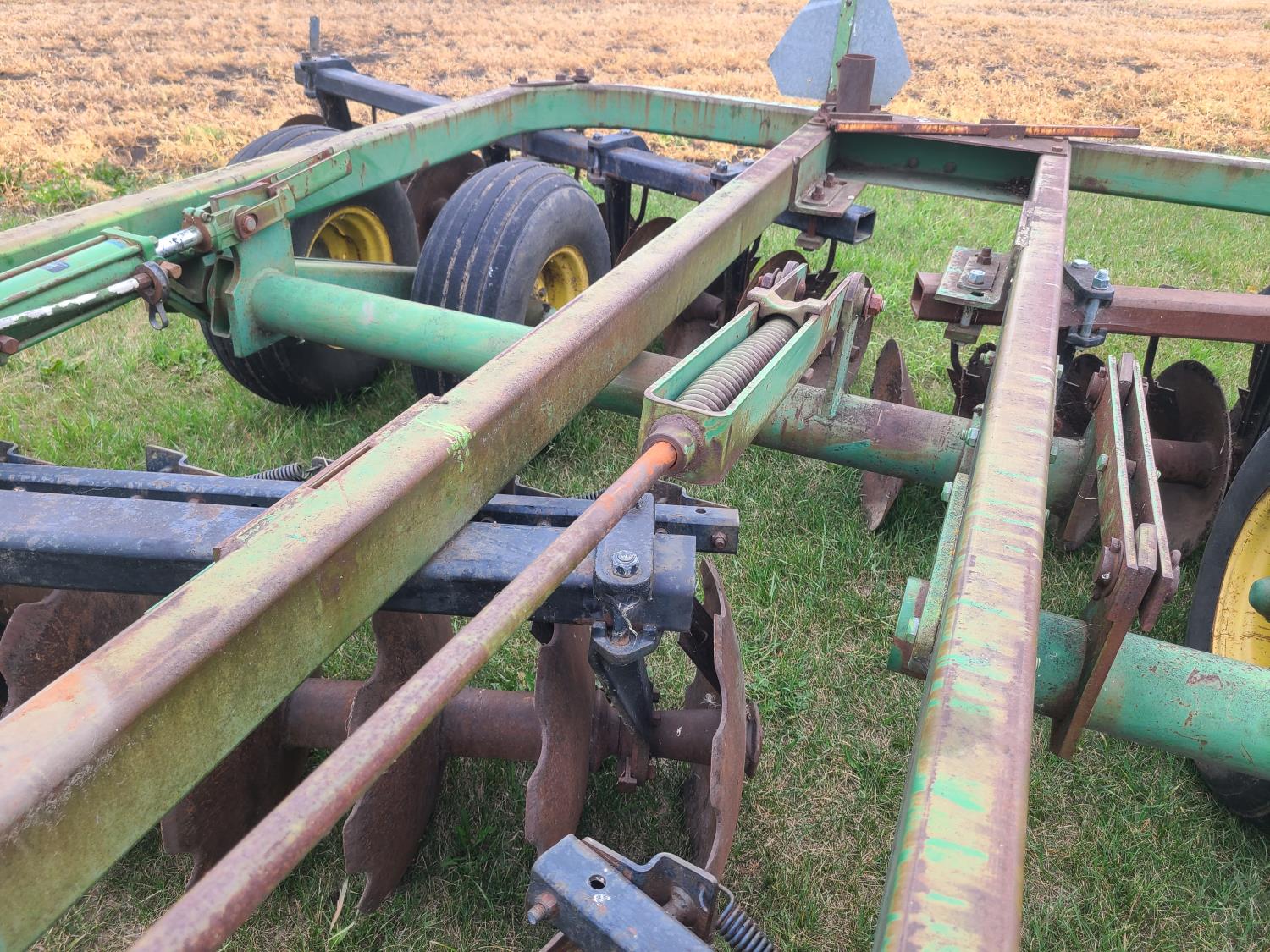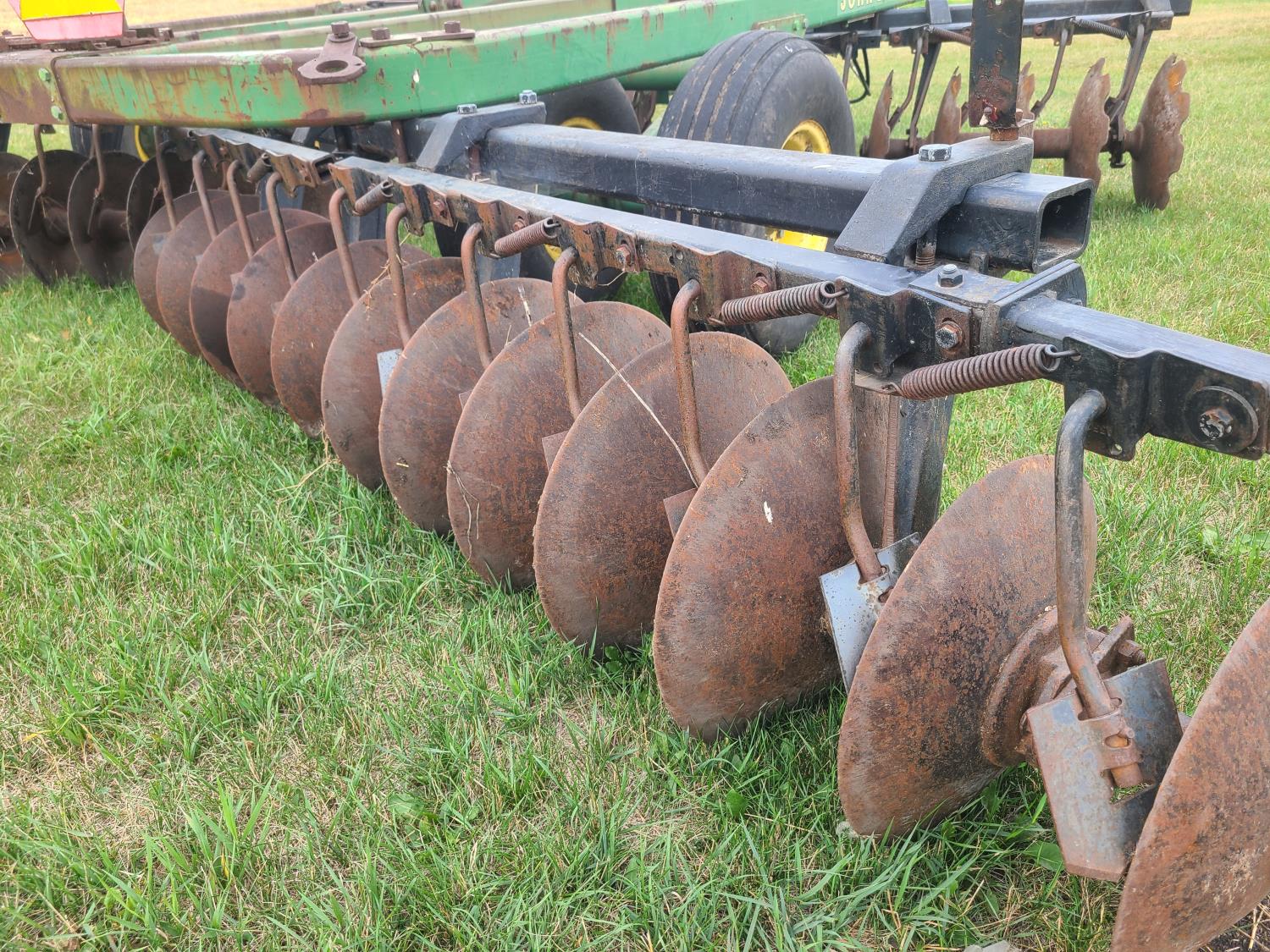 front: 9 inch spacing notched 21 inch discs, rear: 9 inch spacing smooth 18 inch discs, duals main frame, 11L-14SL main frame tires