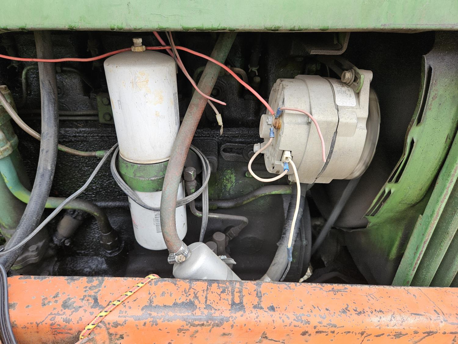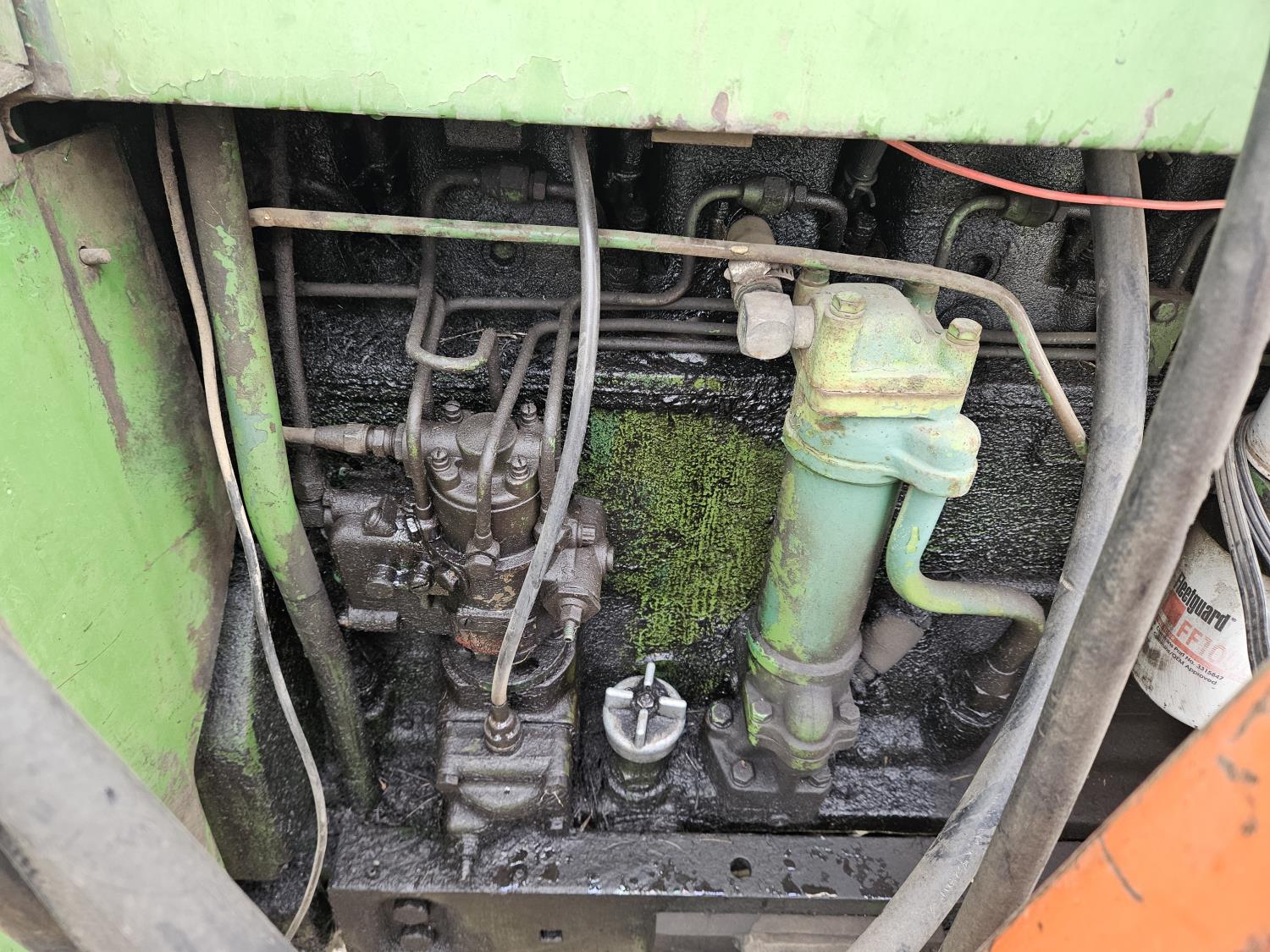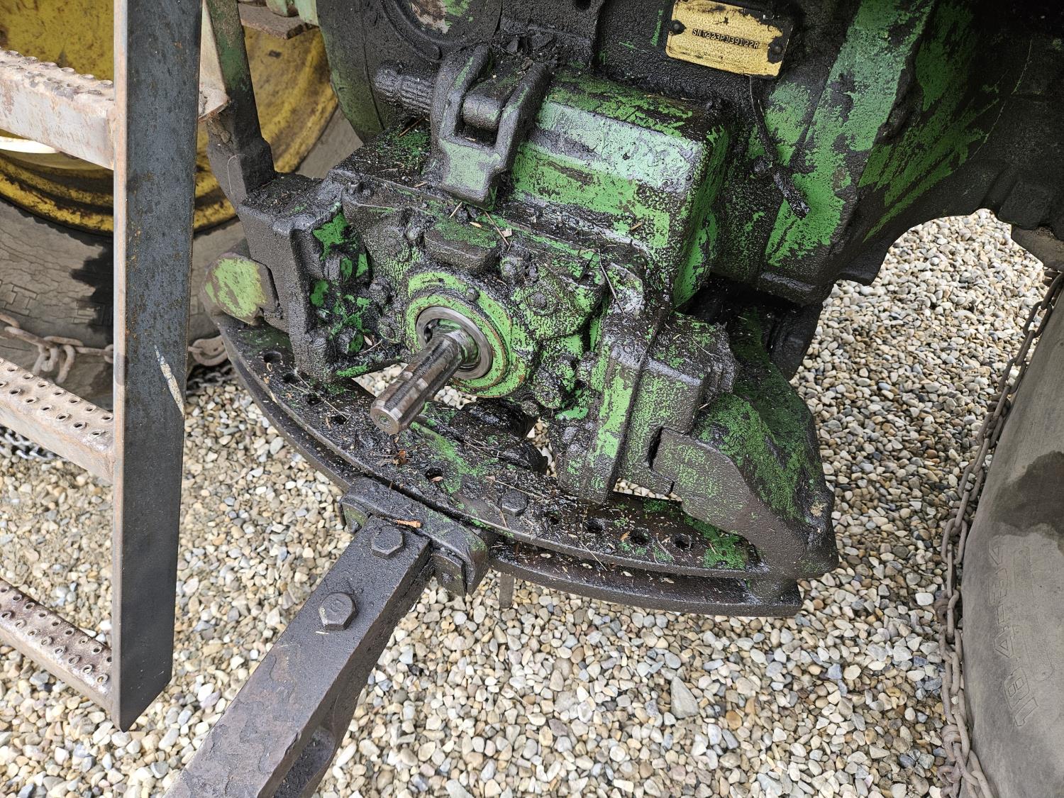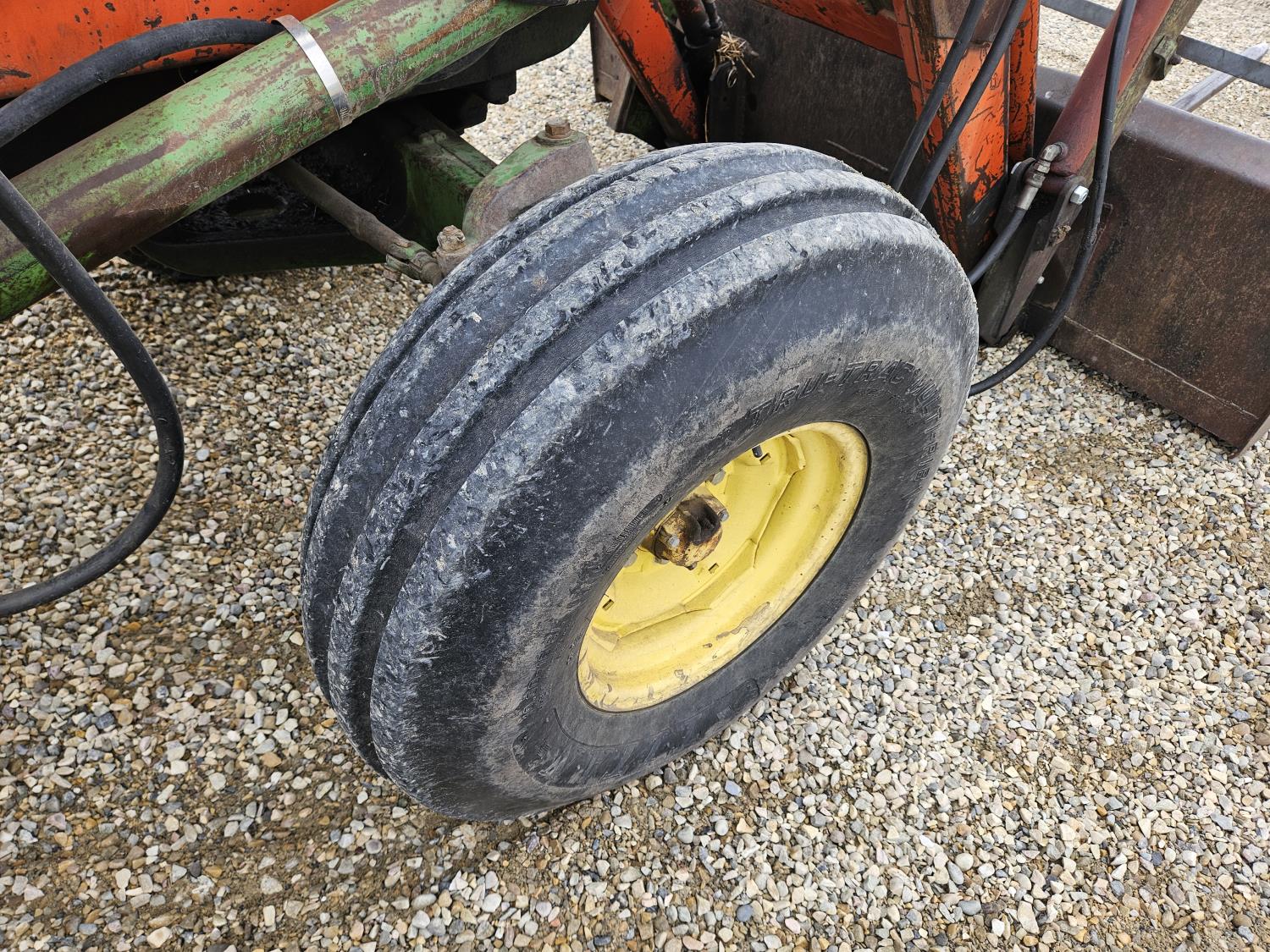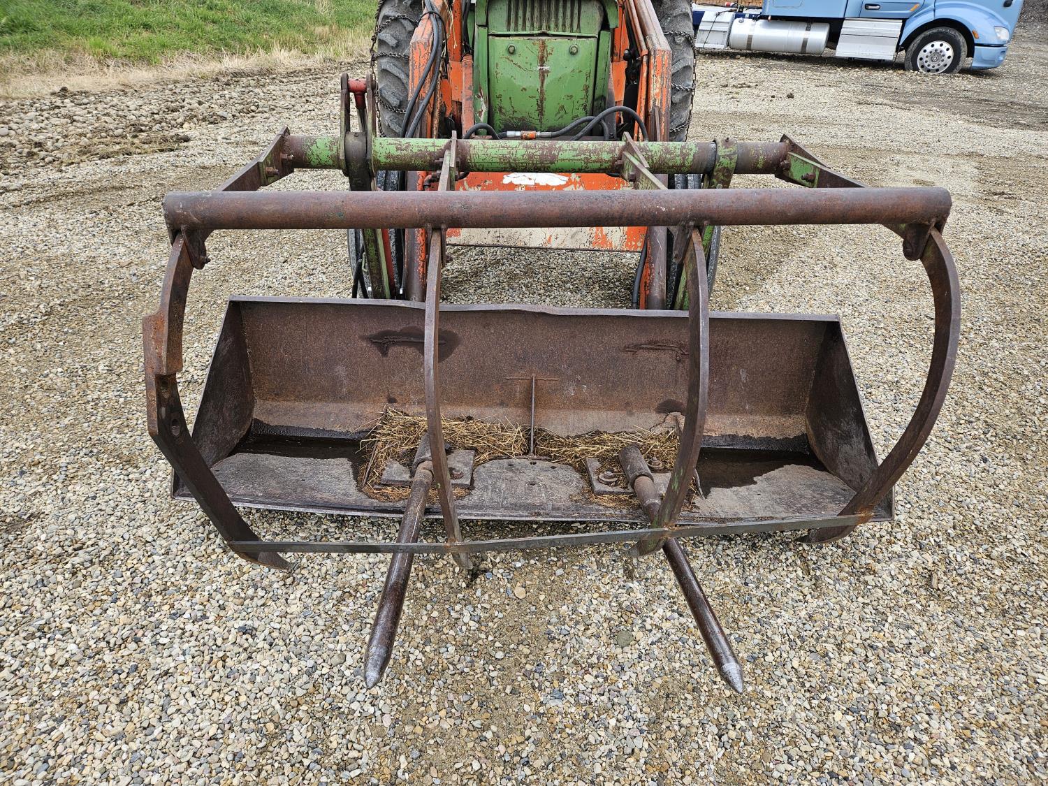 Lift-Rite 121 loader, 84 inch bucket, grapple, John Deere 6.6 L 6 cylinder diesel engine, 8 speed power shift transmission, power steering, cab, 540/1000 PTO, 1 rear hydraulic outlets, 10.00-16 front tires, 18.4-34 rear tires, rear tire chains