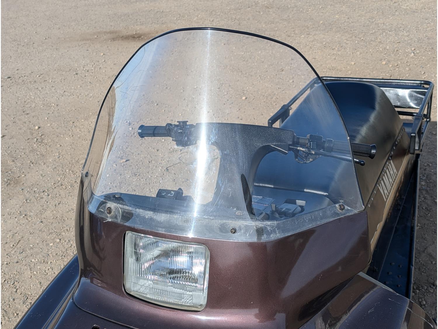 540 cc Yamaha 2 cylinder Fan cooled engine, electric start, windshield, hand and thumb warmers, 151 inch track, rear tow hitch, articulating rear end, high and low range transmission