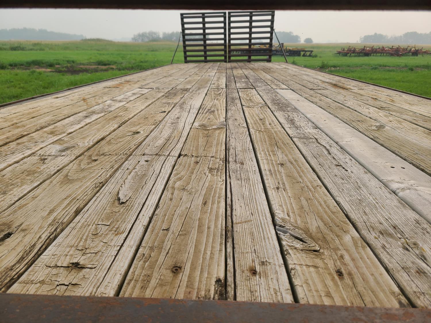 96 inch wide deck, 60 inch beaver tails, wood deck, stand up ramps, electric brakes, spring suspension, stake pockets, 24.5 ft deck, 10000 lb axles, ST235/80R16 tires