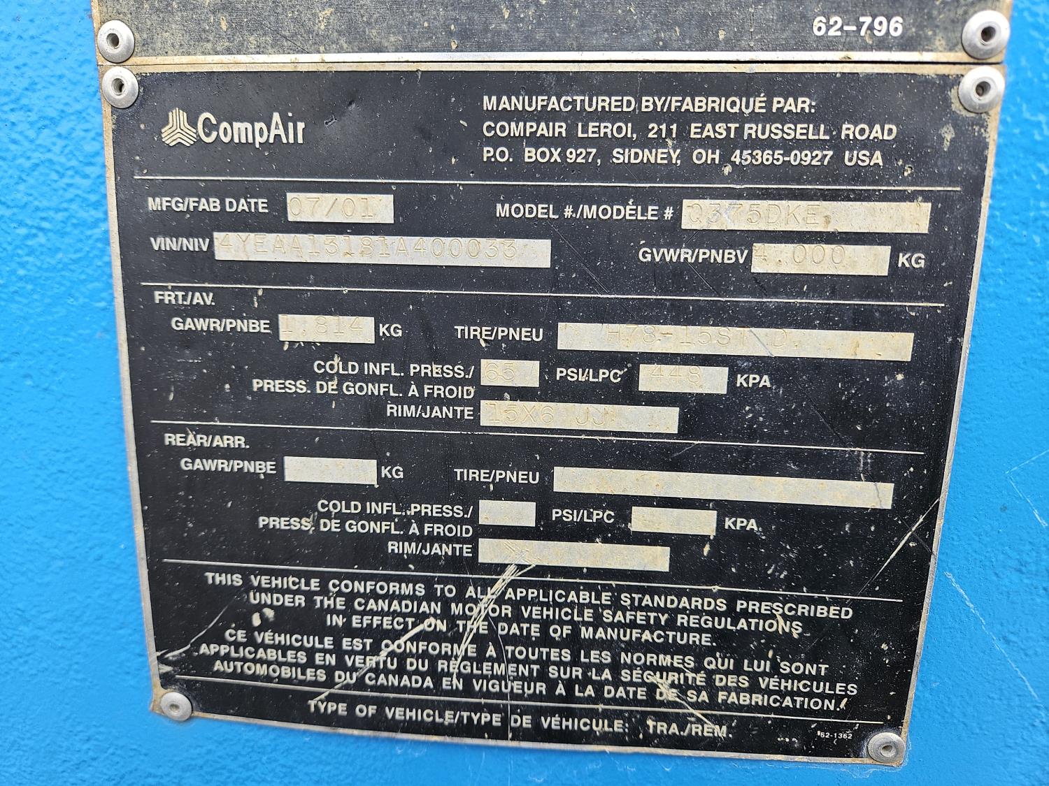 49 2001 Comp Air Q375DKE Towable Compressor