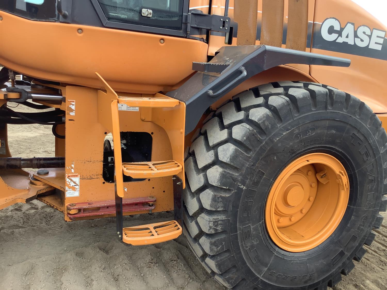 Enclosed cab, A/C, 4 speed powershift transmission, Case 668-TA/E2 170 HP engine, 1 auxiliary hydraulics, Weldco Beales 3-1/4 yard smooth bucket, electric power lift for engine hood, NEW 23.5R25 tires
