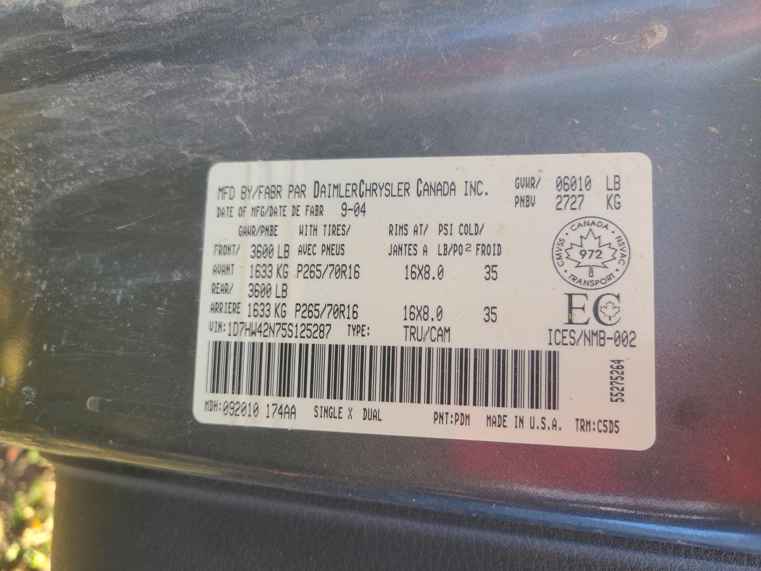 - 1D7HW42N75S125287