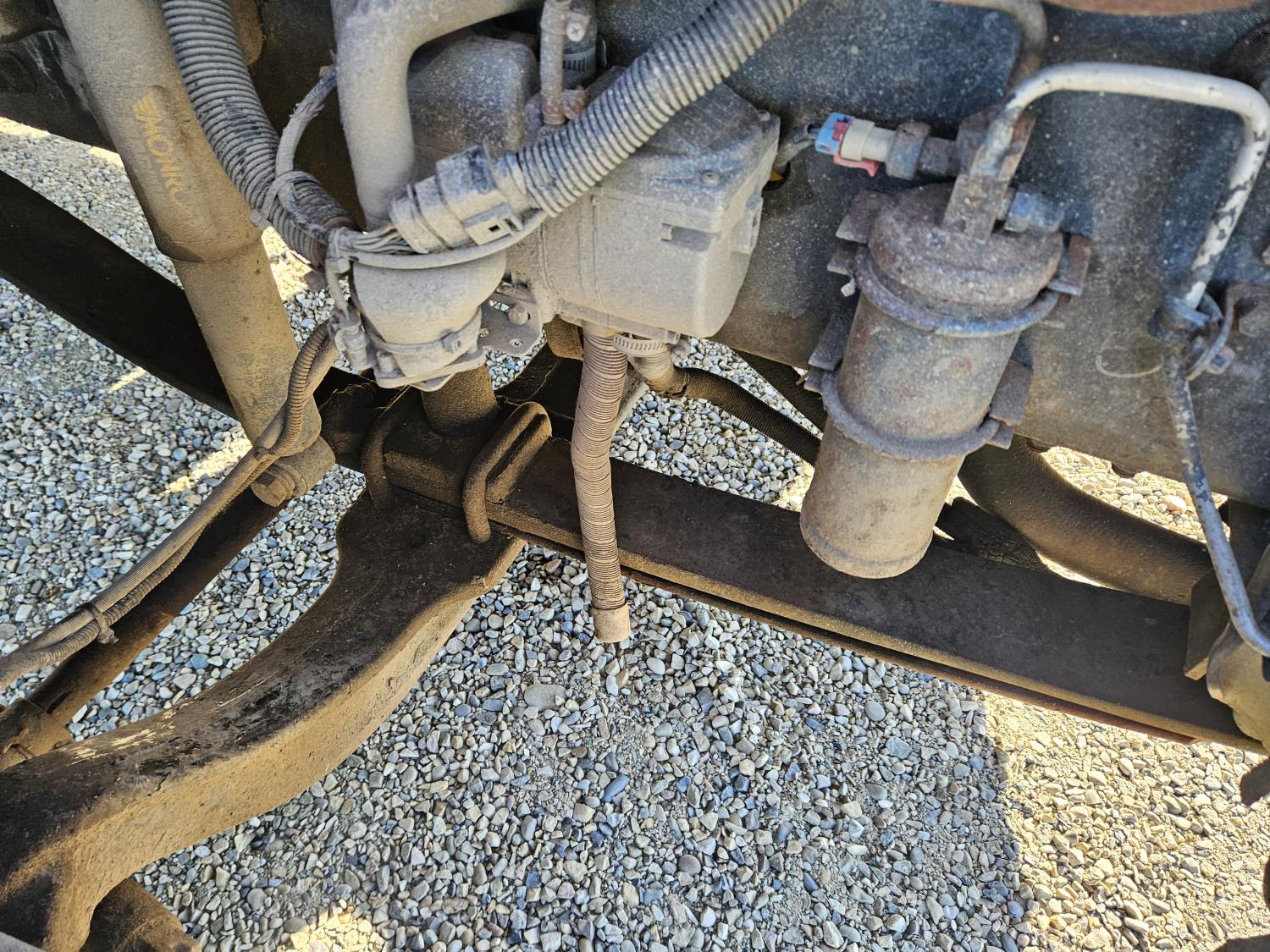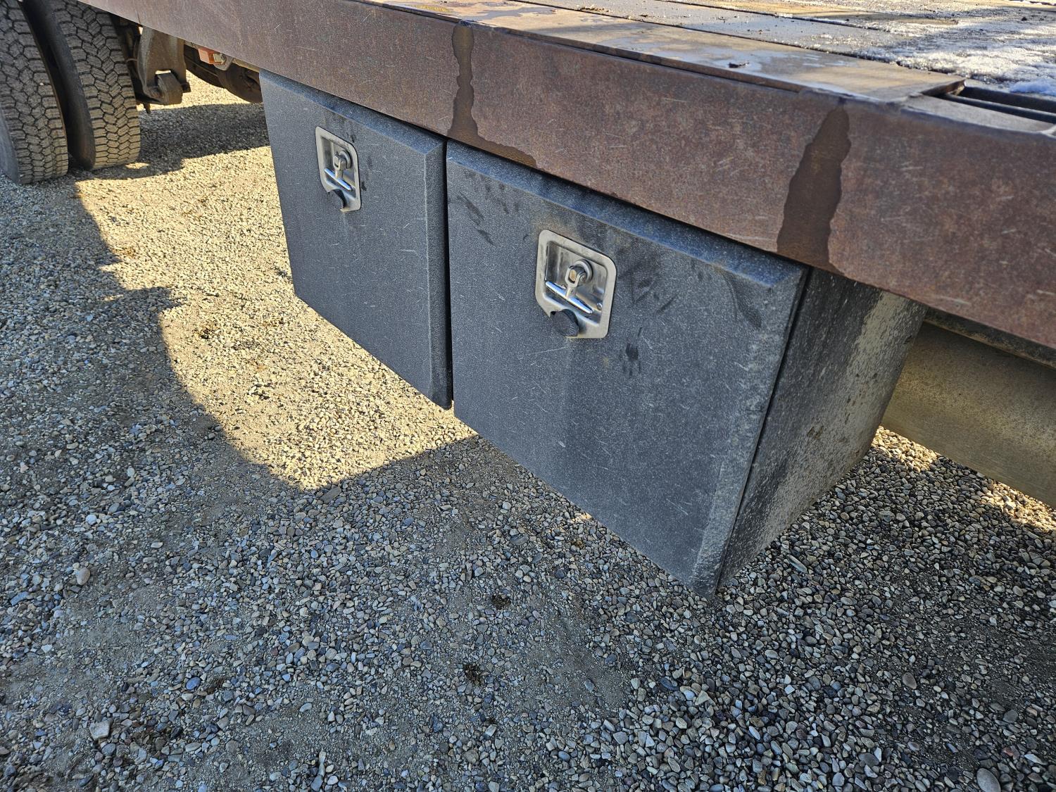 Caterpillar C7 7.2 L 6 cylinder diesel engine, Wabasco diesel engine heater, automatic transmission, A/C, radio, steel headache rack, steel tool boxes, 94 inch x 18 ft deck, air ride suspension, 10,000 lb rear axles, 10R22.5 tires