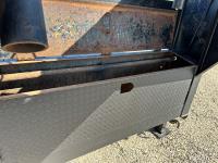 97 inch wide deck, wood deck, flip over ramps, electric brakes, spring suspension, tool / storage box, rub rails, stake pockets, comes fifth kingpin hitch , 235/80R16 tires