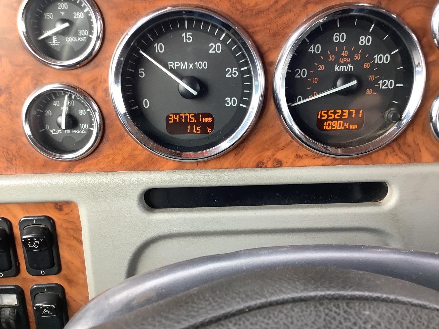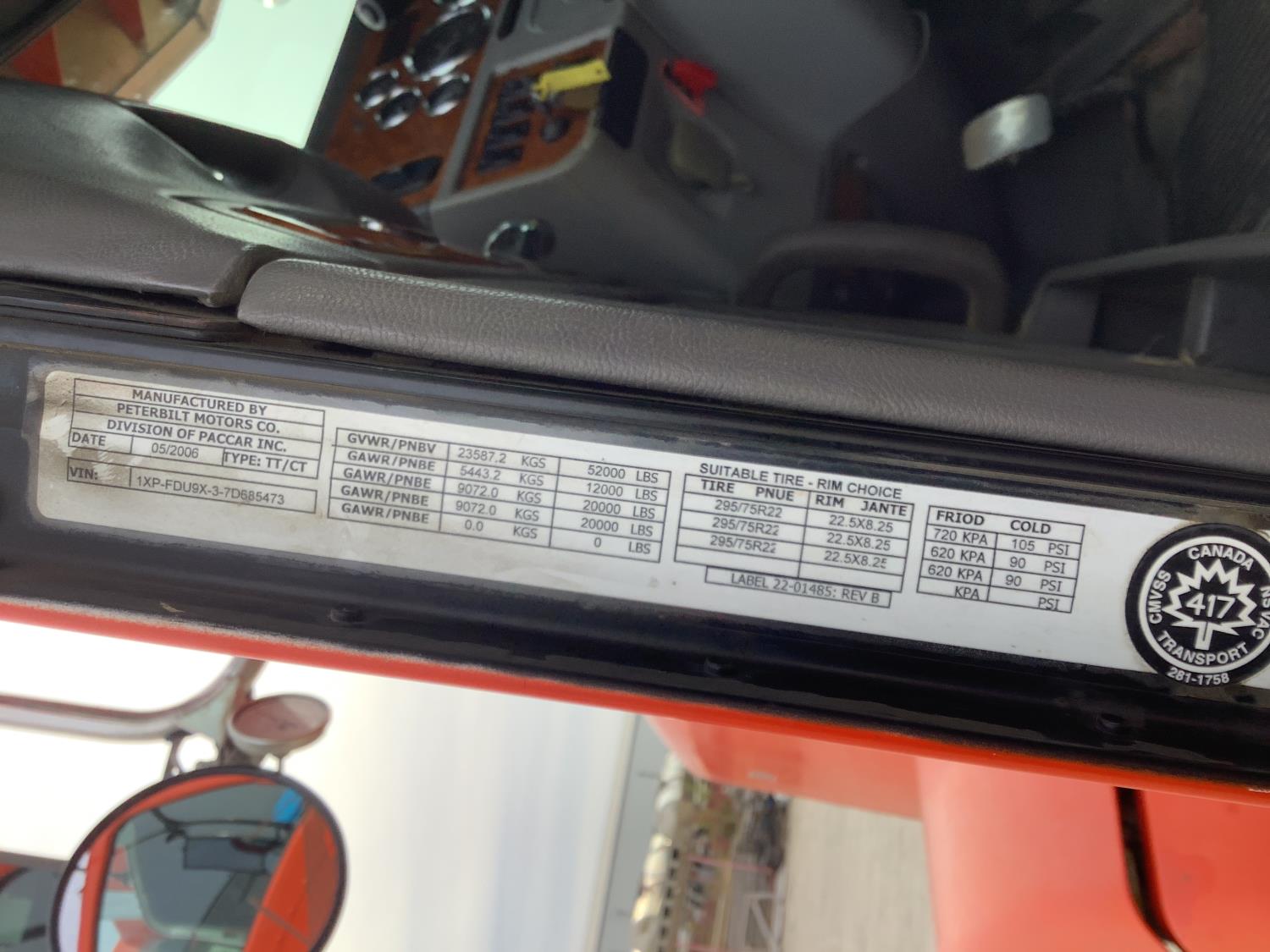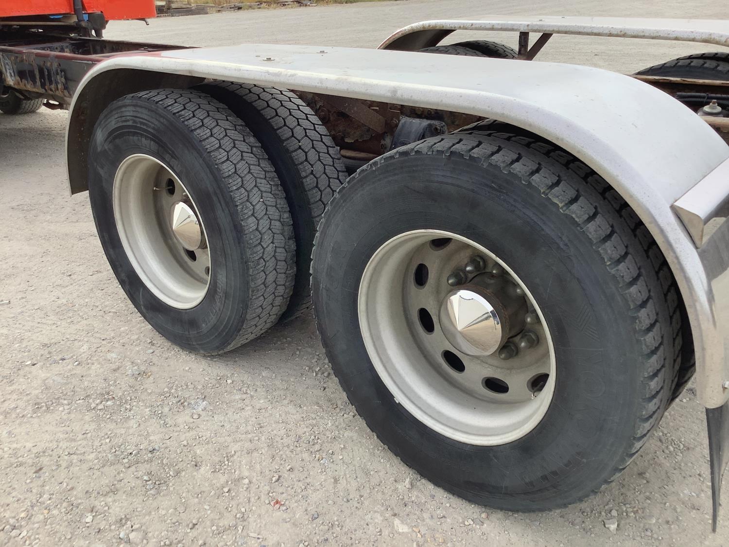 Cater C13 engine, engine brake, positive air shutoff, Eaton Fuller 18 speed manual transmission, mid rise 46 inch removable, sleeper, air ride suspension, 12,000 lb front axle, 40,000 lb rear axles, full lockers, all aluminum wheels, 385/65R22.5 front tires, 11R224.5 rear tires
