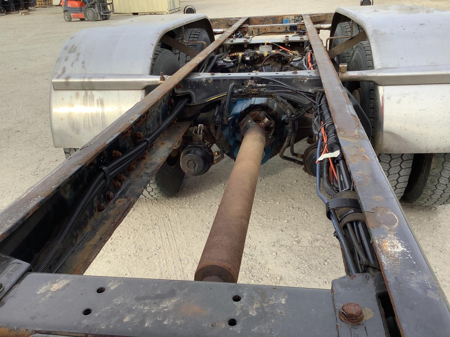 There is 20 Feet of frame from the back of the sleeper to the end of the frame. The sleeper is removable giving a extra 3-1/2 ft of frame if needed. Make a great deck or grain box truck has the set back axle that helps the sharp turning radius. This truck was a fuel liquid tank truck and has a lot of repairs done in the past years. Good running unit seller has gone to a new larger unit. Get Pre Approved financing on this item before sale. Real simple call Mike at 1-905-978-0732 anytime 7 days a week.