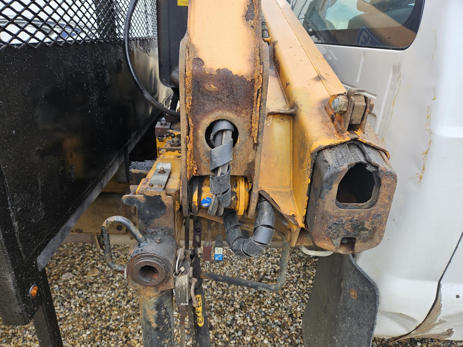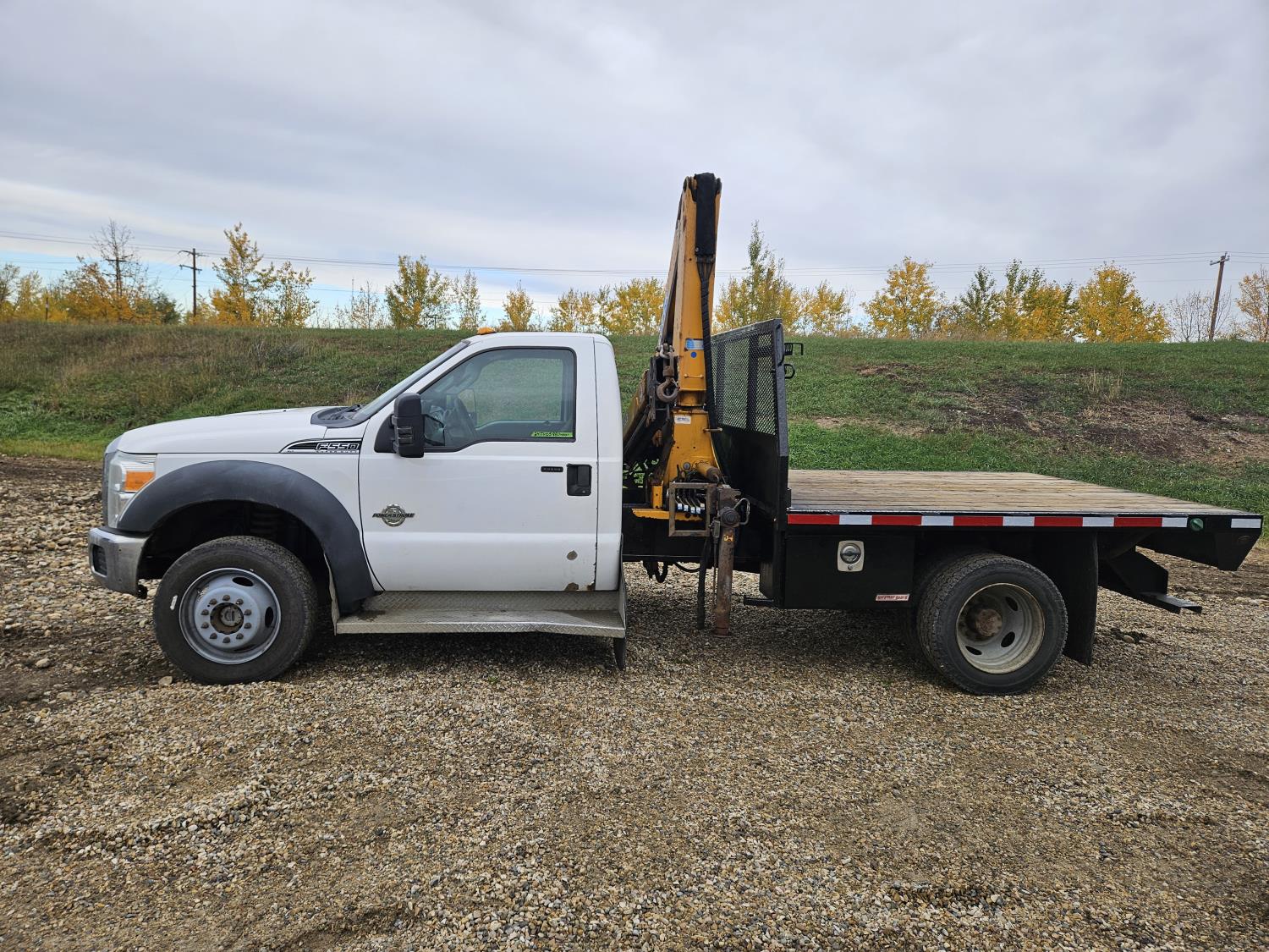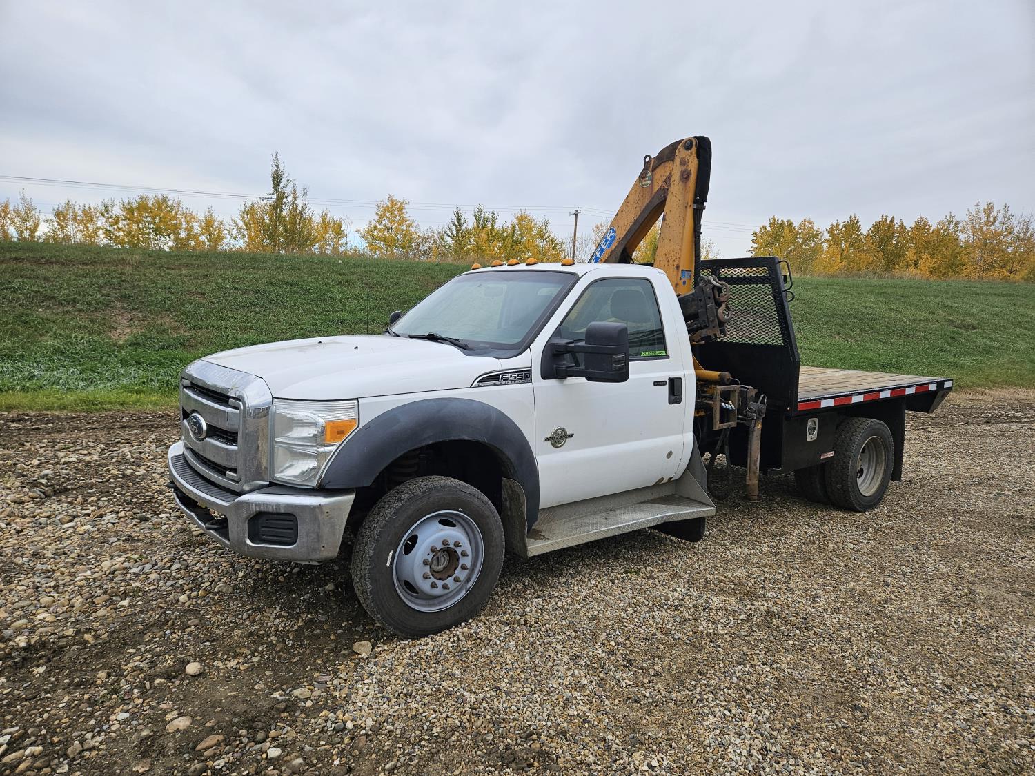Powerstroke 6.7 L V8 diesel engine, automatic transmission, A/C, cruise control, 8 ft x 112 inch deck, Effer 62-4S 2 section 35 ft knuckle crane, outriggers, 225/70R19.5 tires