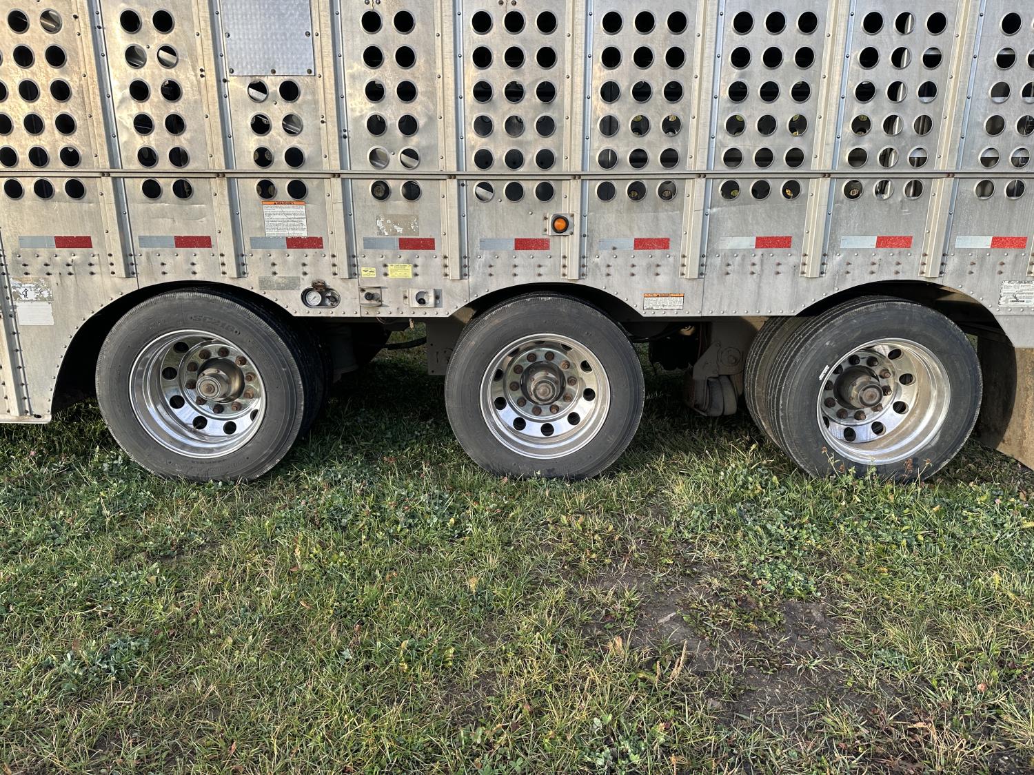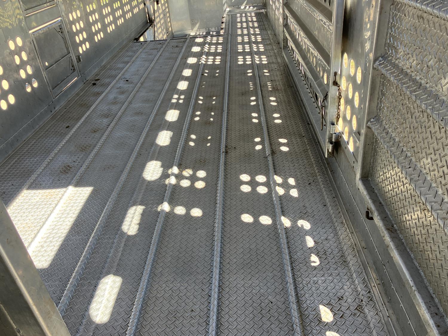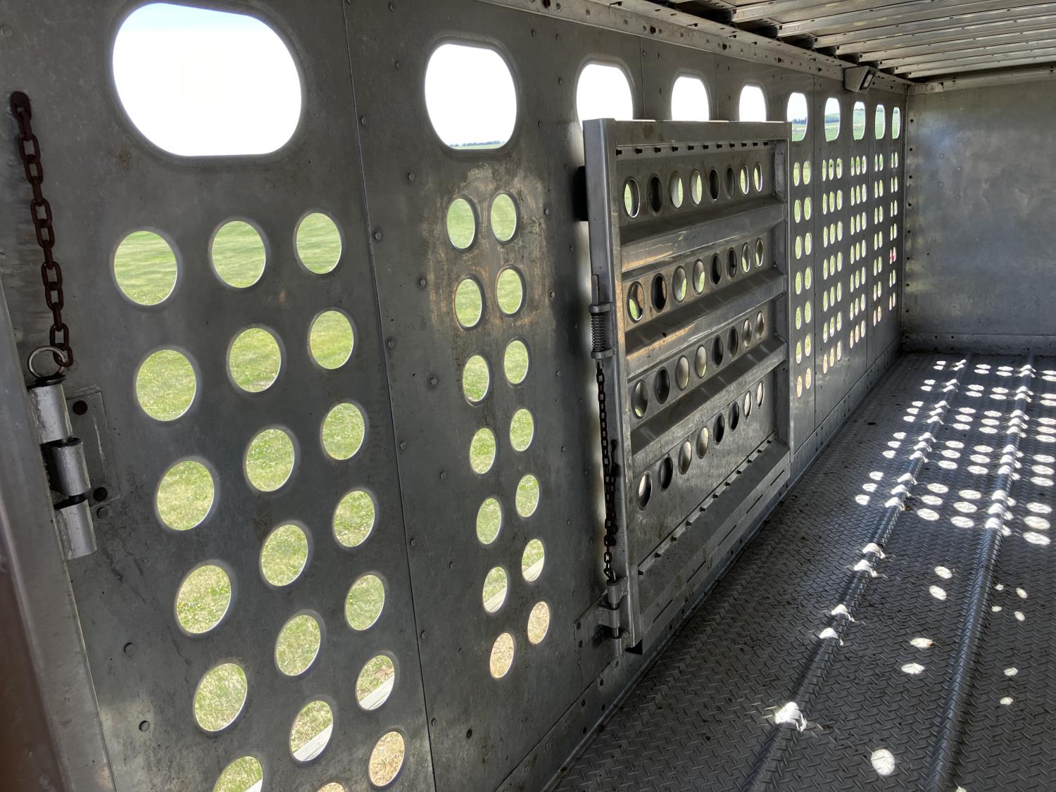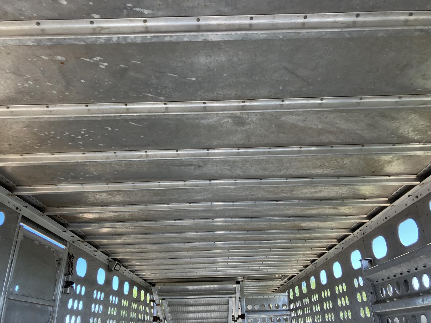 dog house, suspension air gauge, front and rear lift axels, 16 ft rear end, 26 ft belly, 10 ft nose, front deck planks, escape latches, aluminum wheels, 225/70R22.5 tires