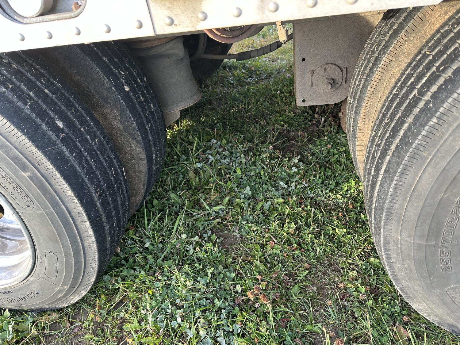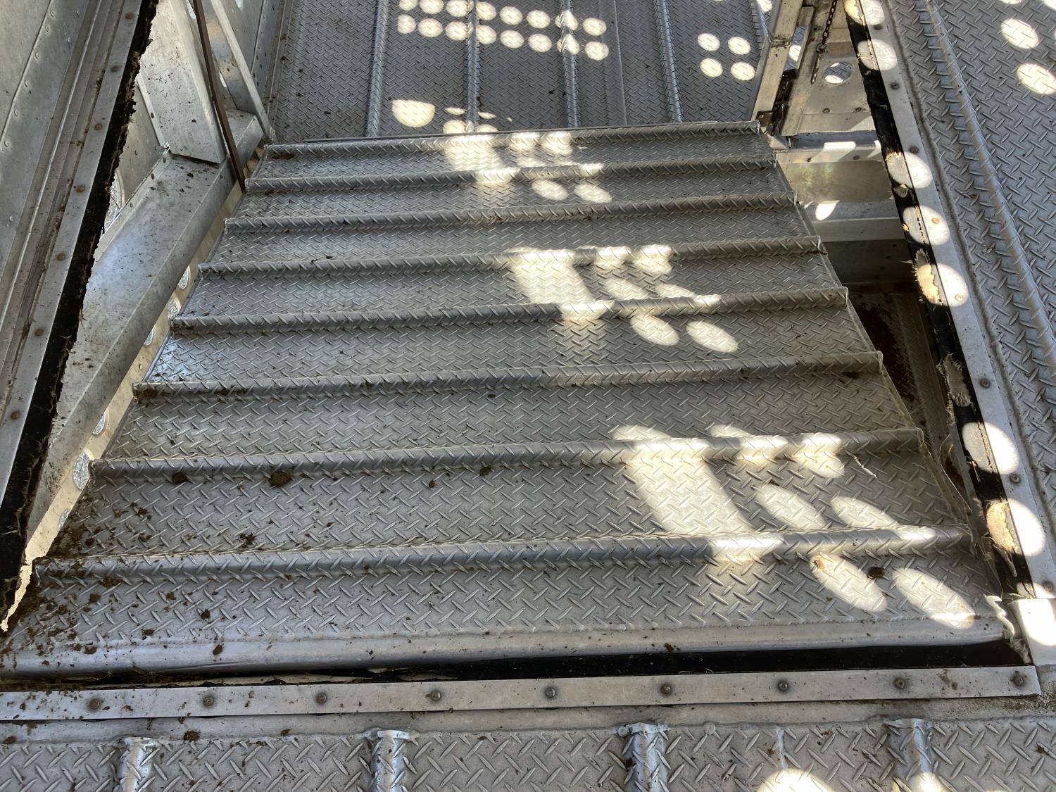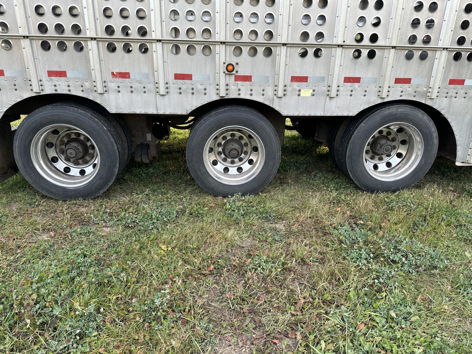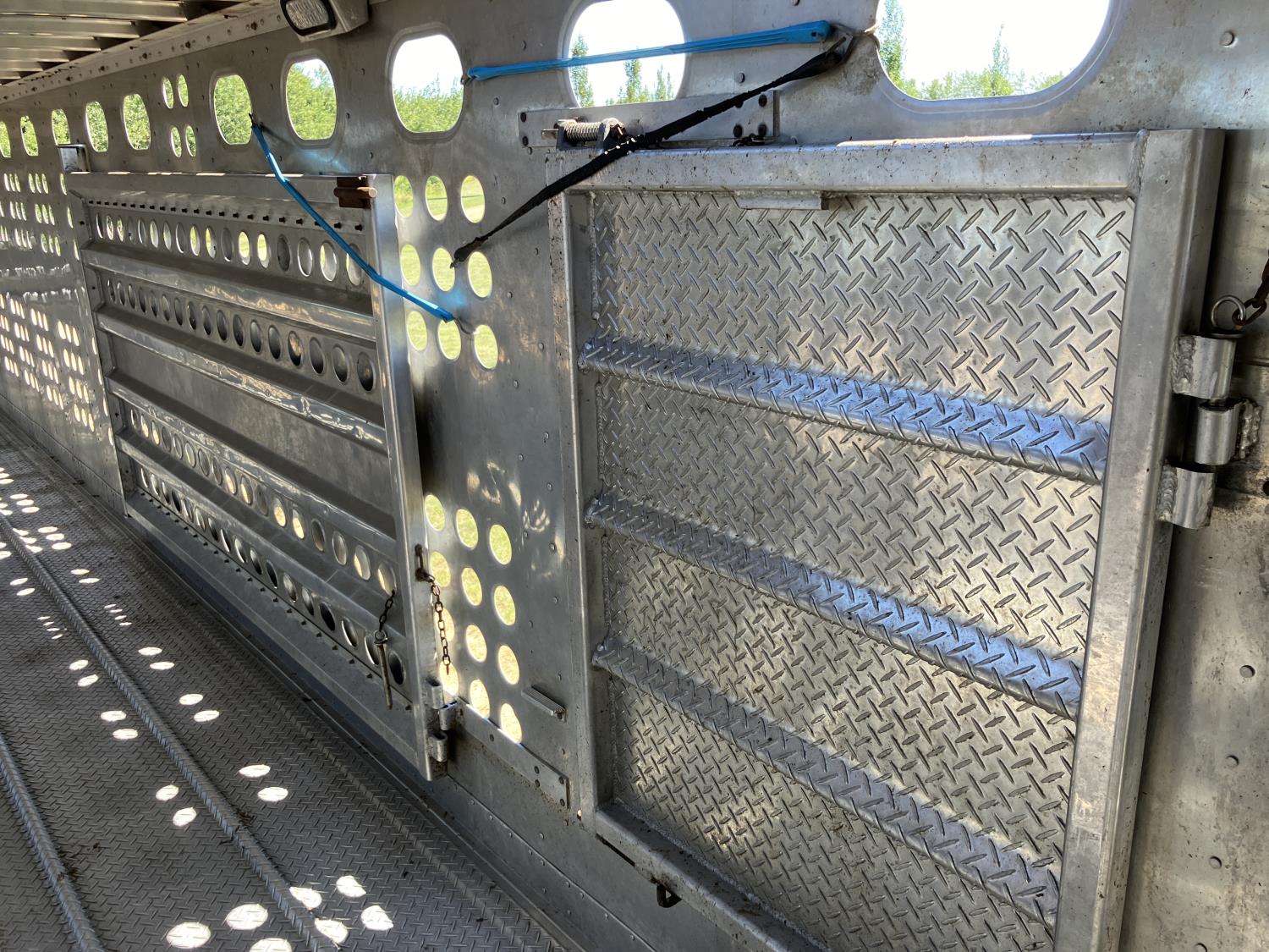 dog house, suspension air gauge, front and rear lift axels, 16 ft rear end, 26 ft belly, 10 ft nose, front deck planks, escape latches, aluminum wheels, 225/70R22.5 tires