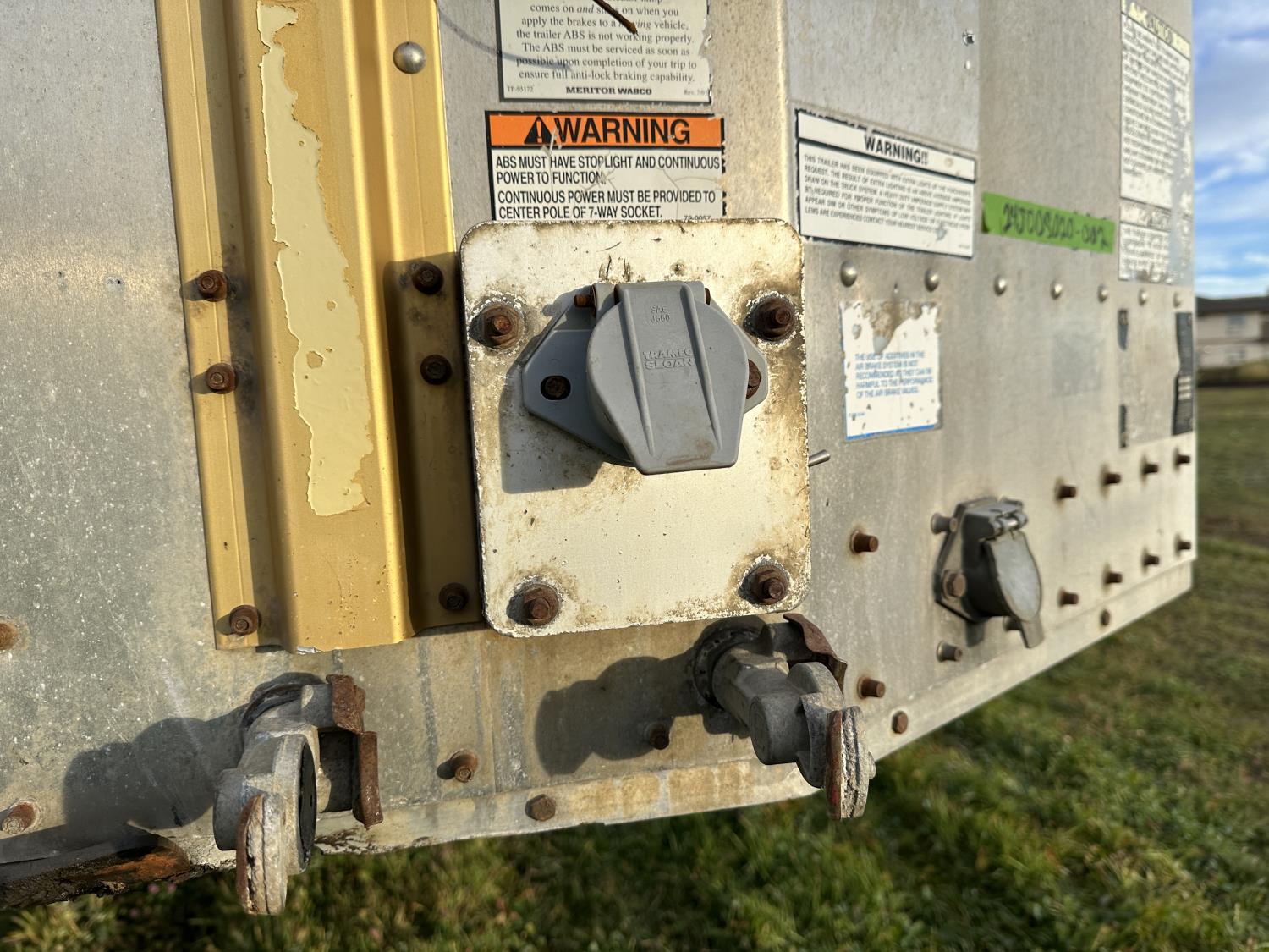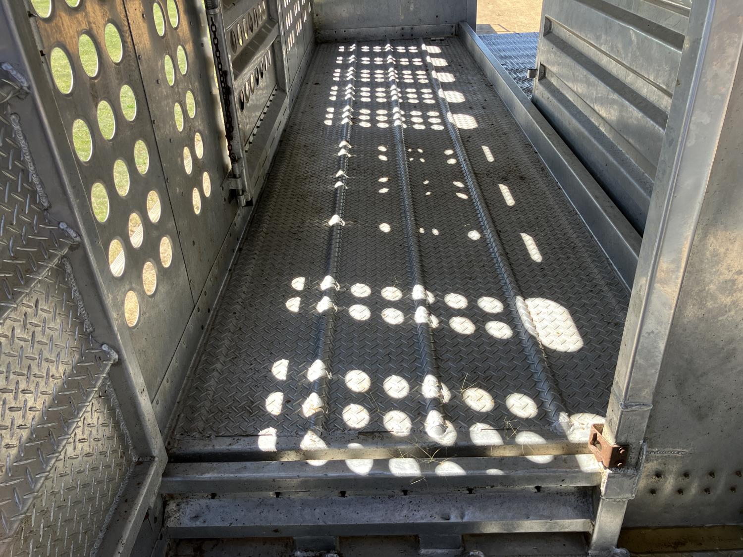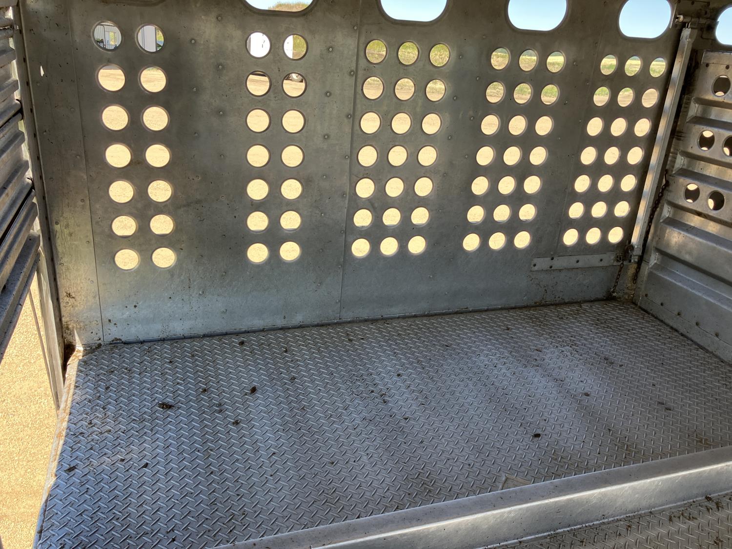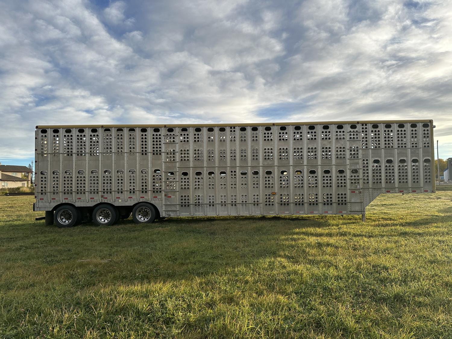 dog house, suspension air gauge, front and rear lift axels, 16 ft rear end, 26 ft belly, 10 ft nose, front deck planks, escape latches, aluminum wheels, 225/70R22.5 tires