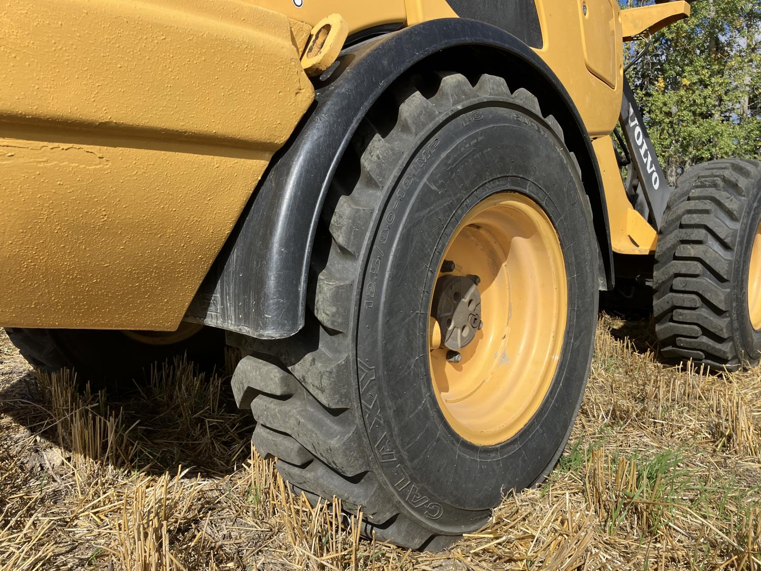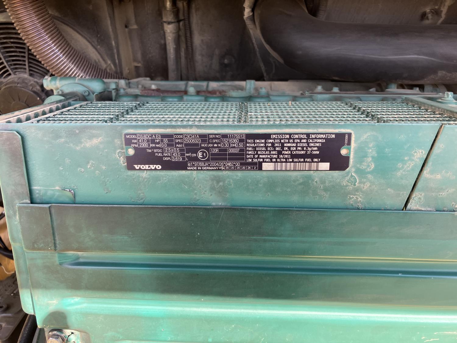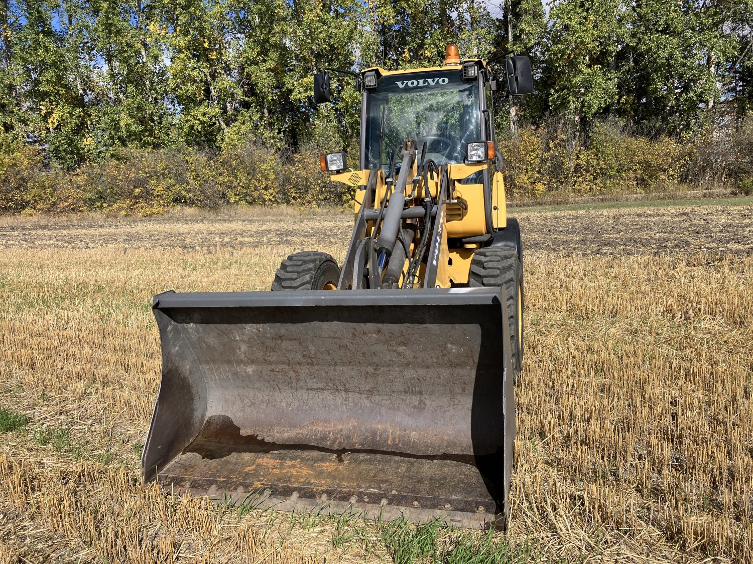 Enclosed cab, A/C, 2 speed hydro transmission, Volvo D3,6DC,AE3 air cooled diesel engine, 48 inch pallet forks, WBM 70" bucket with hydraulic steer steer Q/A, diesel engine heater, operators manual, 12.5/80-18 tires