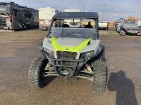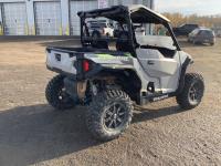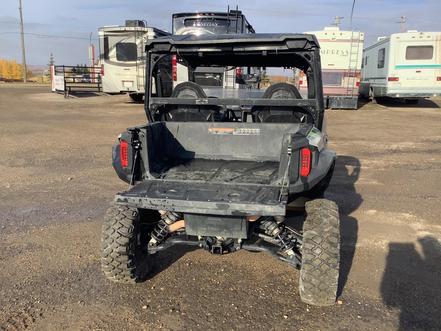 999 cc fuel injected water cooled engine, CVT transmission, Hi/Lo range, reverse, front factory winch with wireless remote, rear tow hitch, canopy, Walker Evans adjustable shocks, differential lock, tilt box, aluminum wheels, 30X10.00R15
