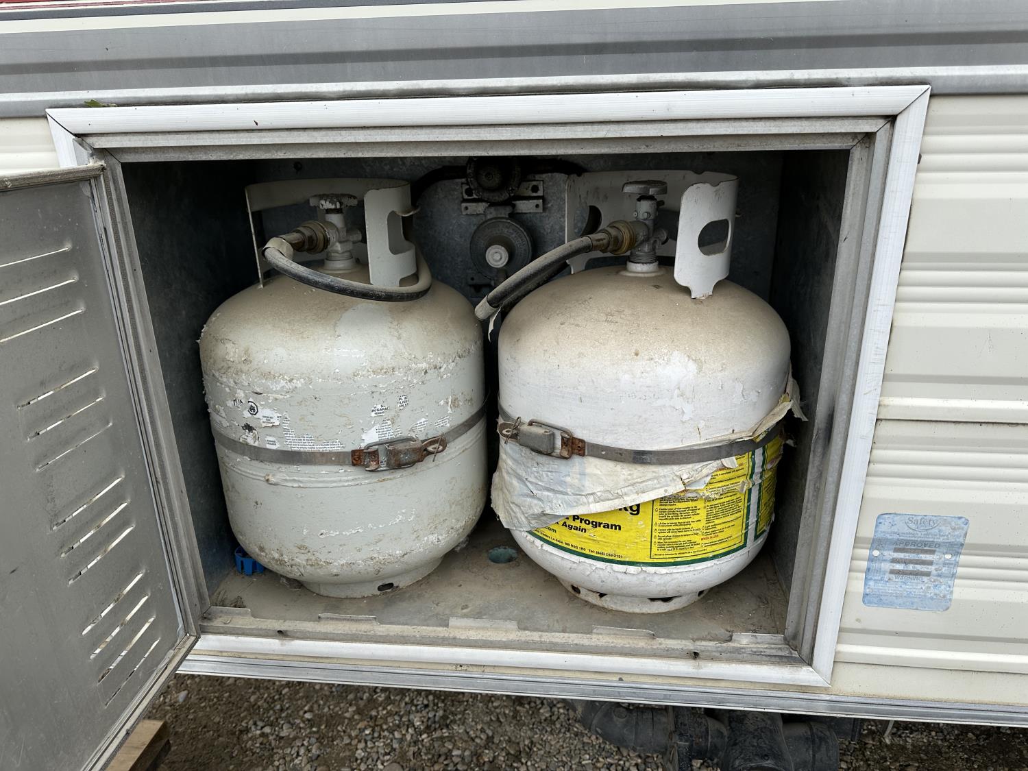 Sleeps 4, stove, fridge, microwave, full bath, master bedroom, outdoor shower, manual awning, spring suspension, 225/70R15 tires