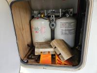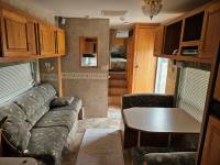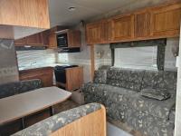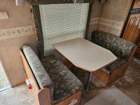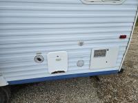 stove, fridge, microwave, full bath, A/C, outdoor shower, 1 slide, manual awning, spring suspension, couch, dinette, winterized, one owner, 205/75R15 tires