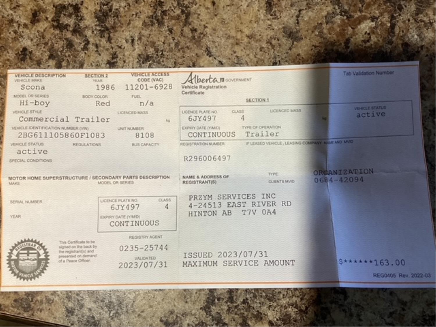 Copy of registration on hand. - Location: