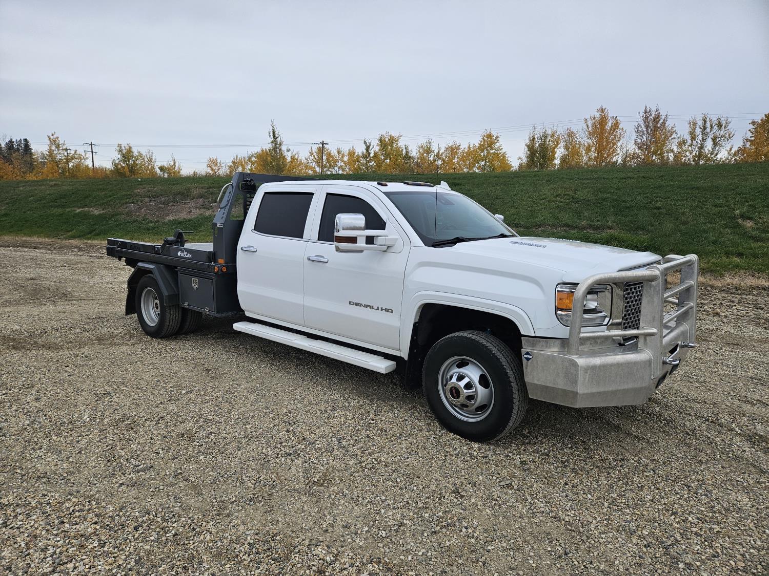 68 2016 GMC 3500 HD Denali 4X4 Crew Cab Dually Falcon Bale Deck Truck