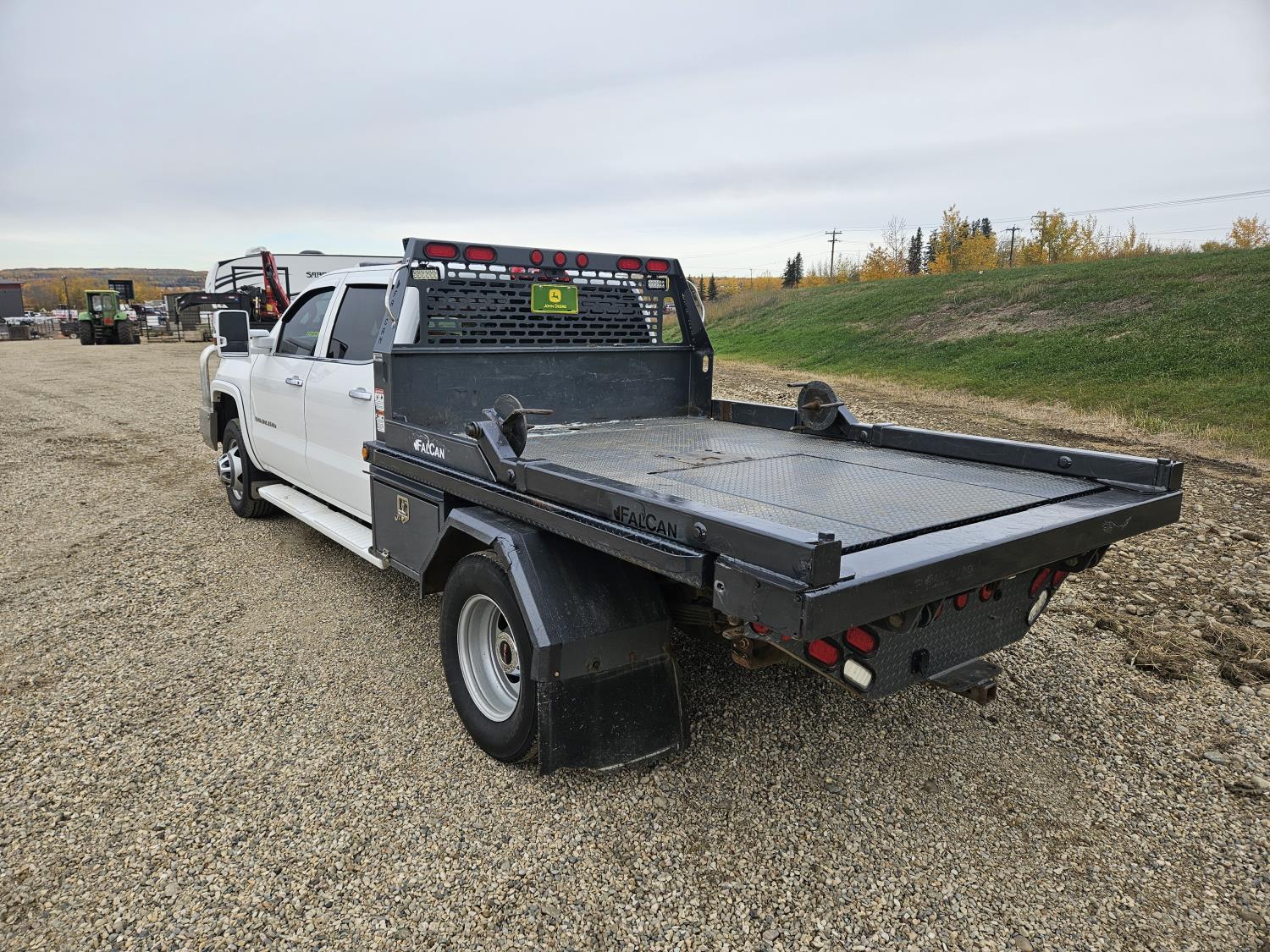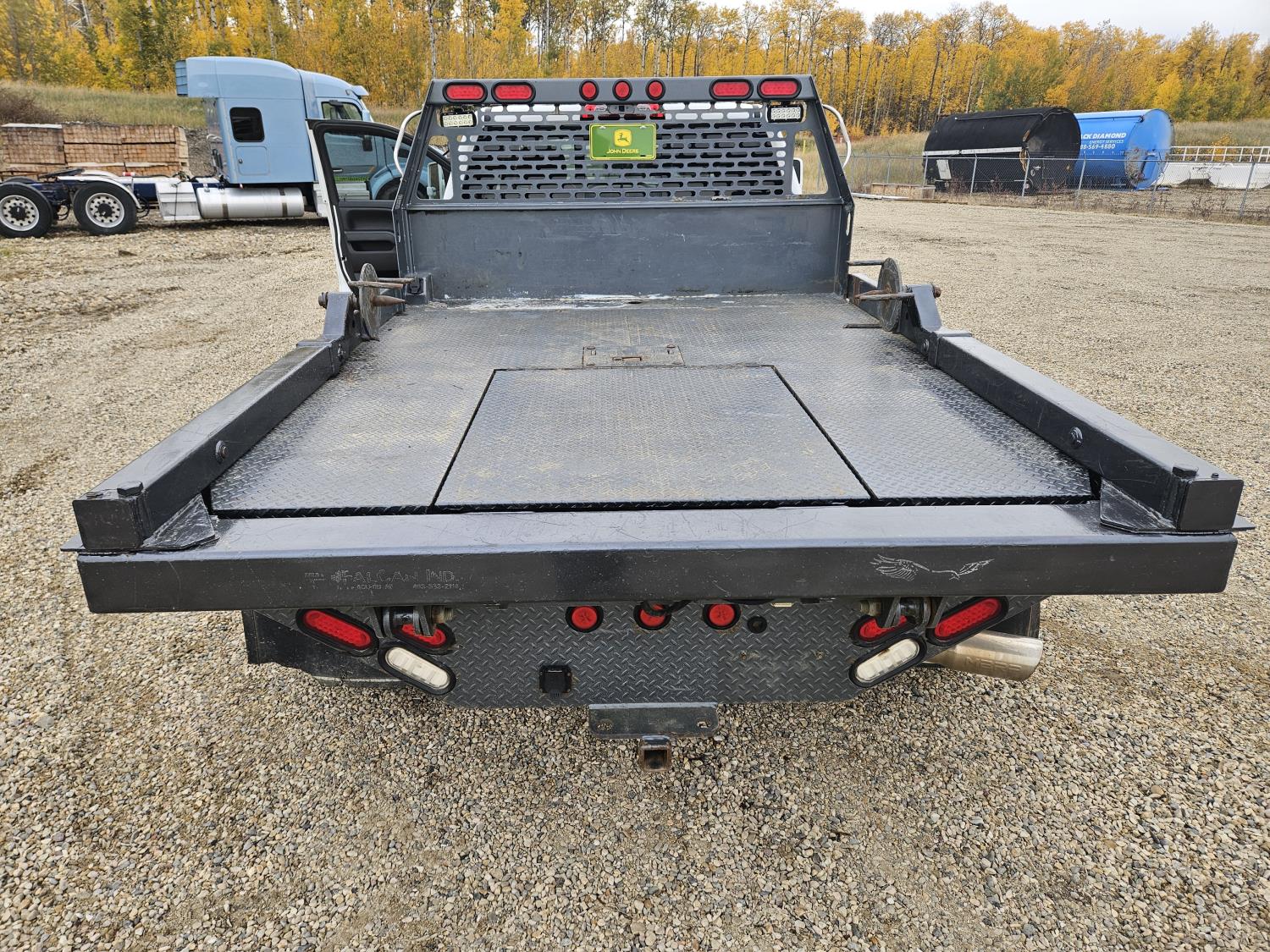 6.6 L, V8, diesel, automatic transmission, leather, P/W, P/L, A/C, navigation system, DVD player, upgraded stereo, running boards, Falcon bale deck with unroller, wireless controller for bale deck, hydraulic controls, deck has 5TH wheel ball hitch, belly mount tool boxes, DEF deleted, rear receiver hitch, aluminum front bumper, LED lights, running boards, 245/75R17 tires