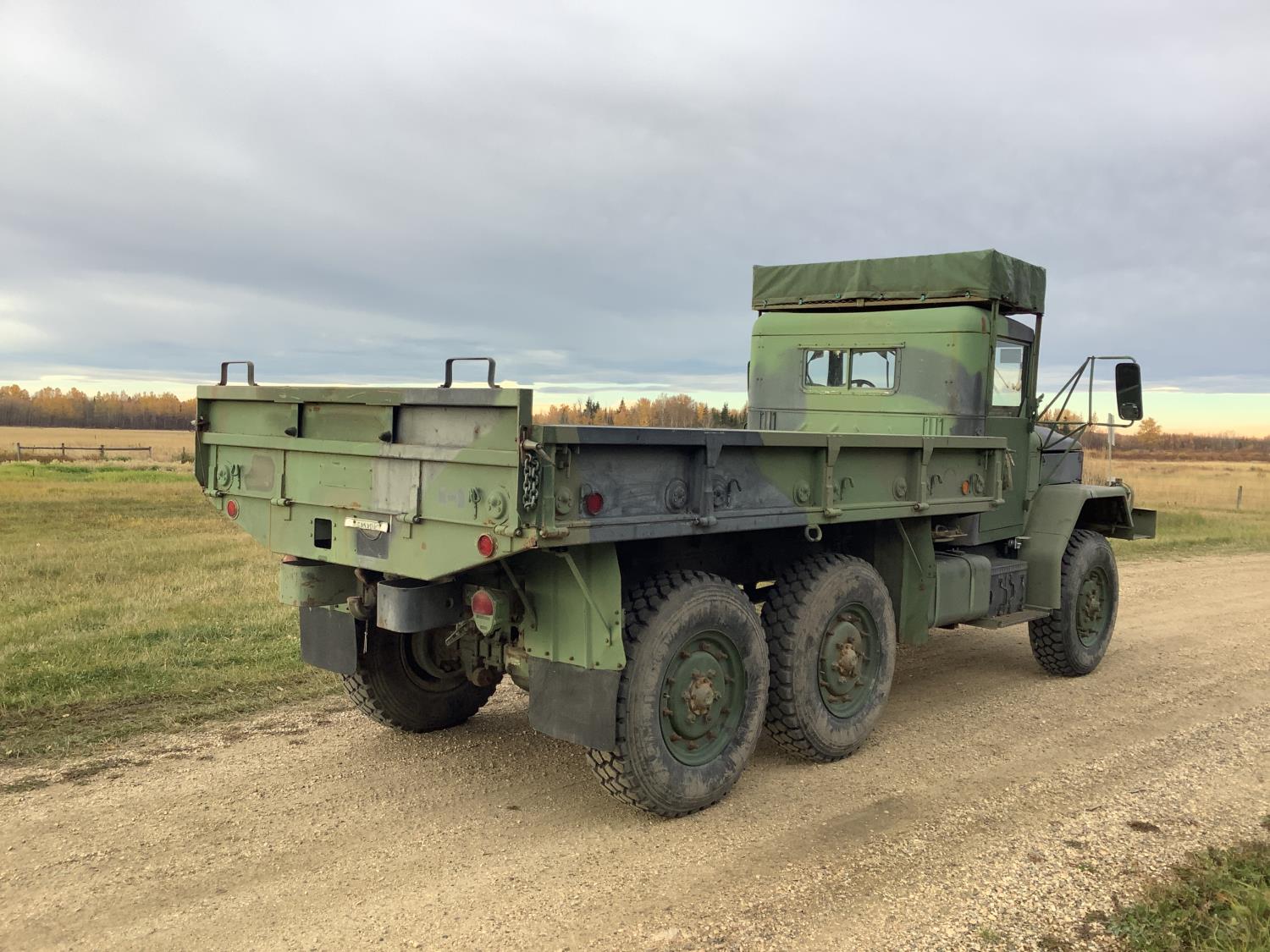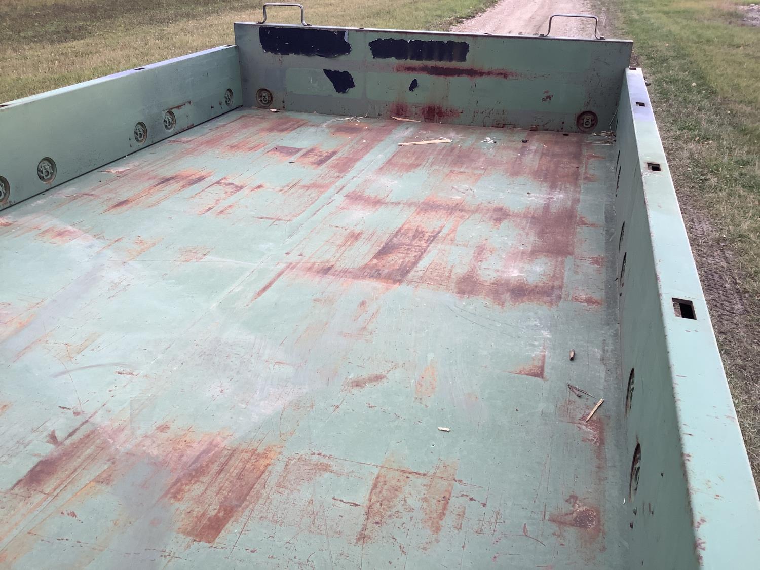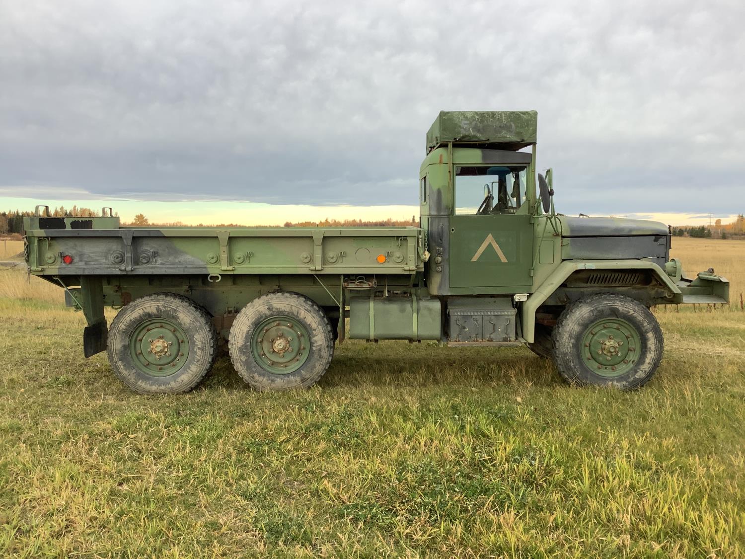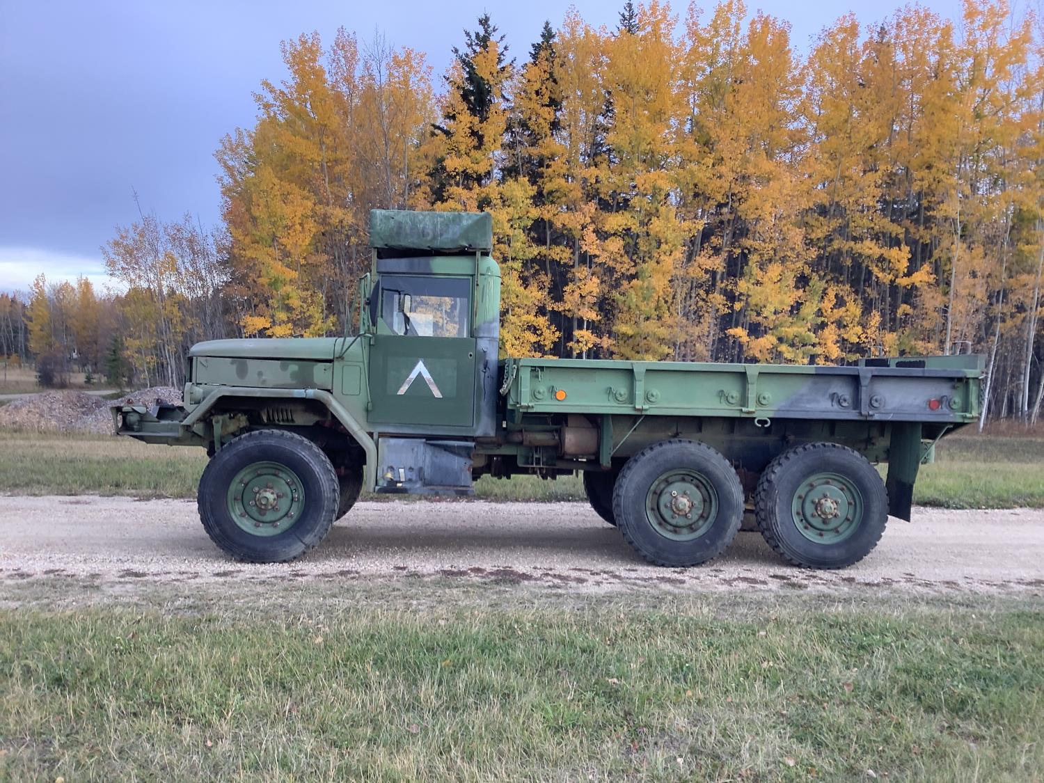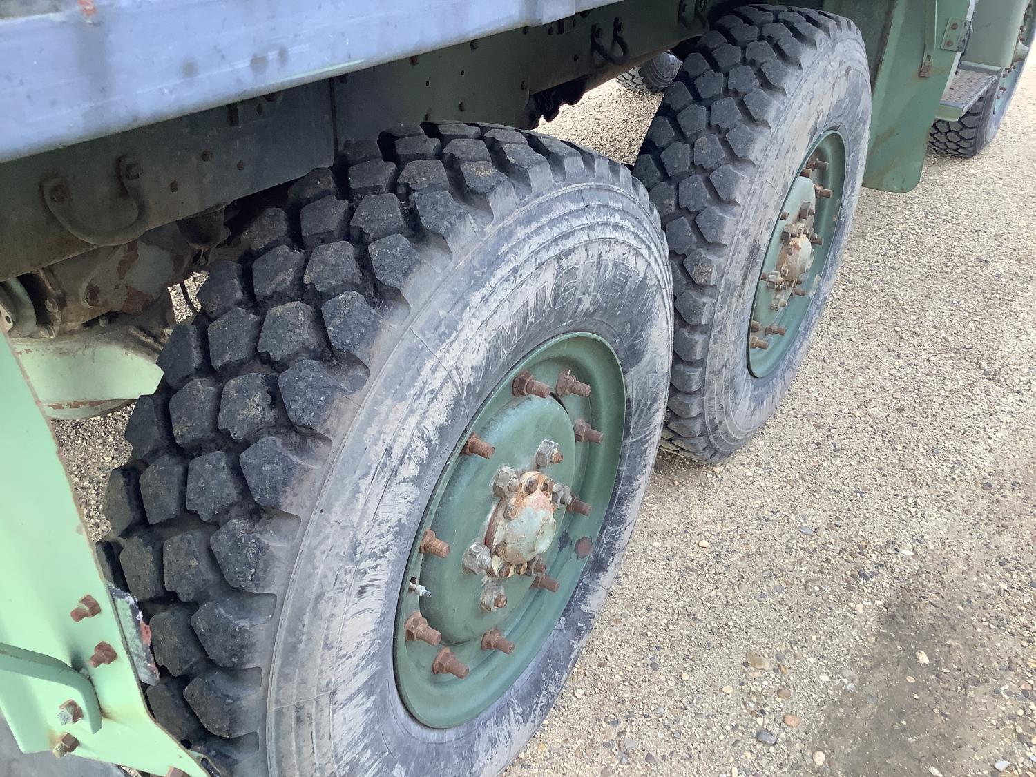 GM 8.2 Fuel squeezer V8 diesel engine, Allison automatic transmission, air over hydraulic brakes, manual park brake, spring suspension, steel box with fold down sides, rear pintle hitch