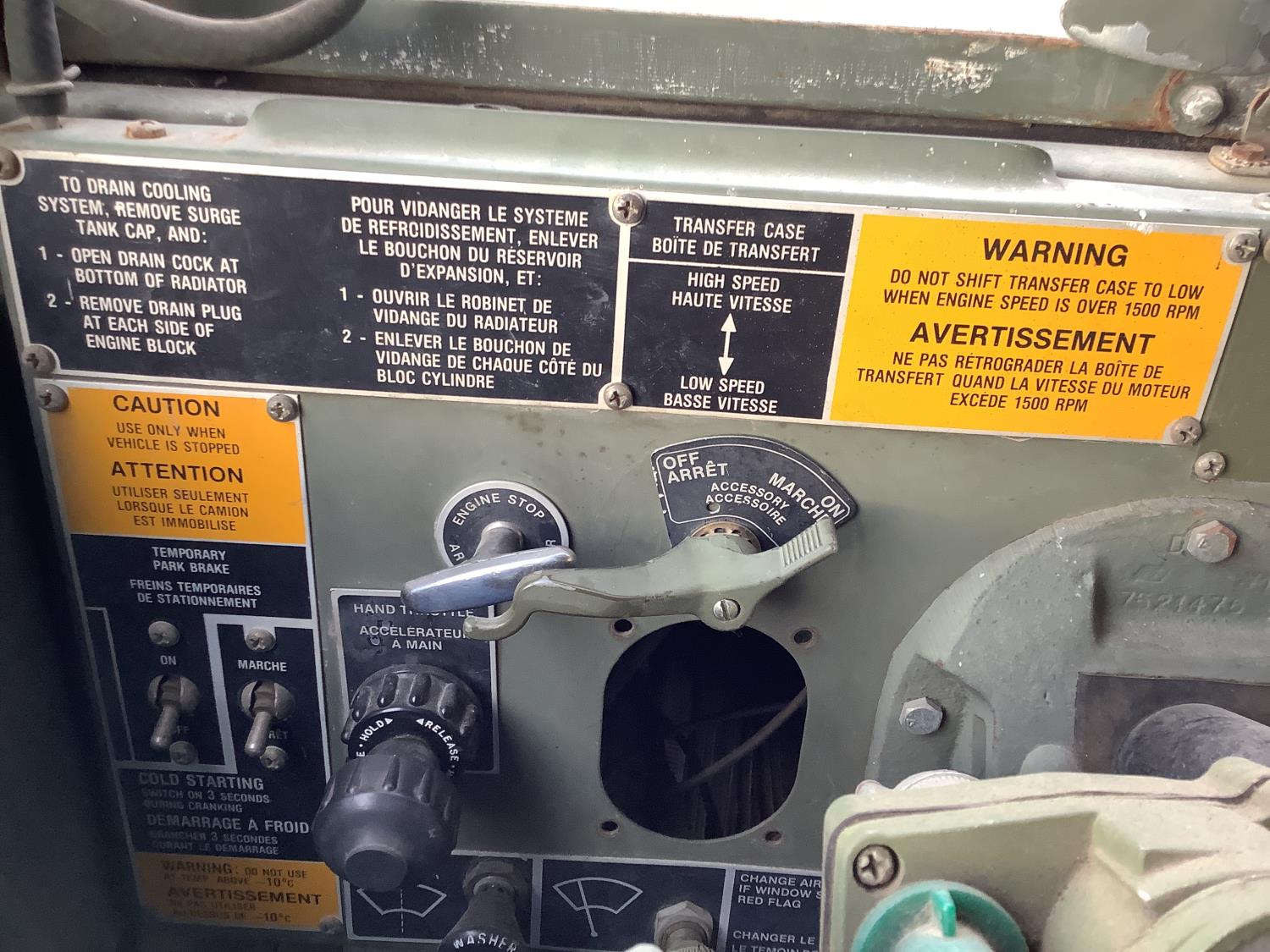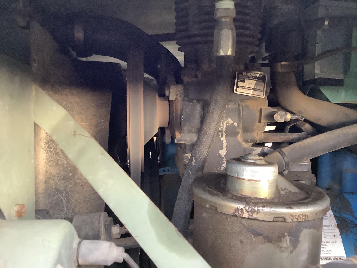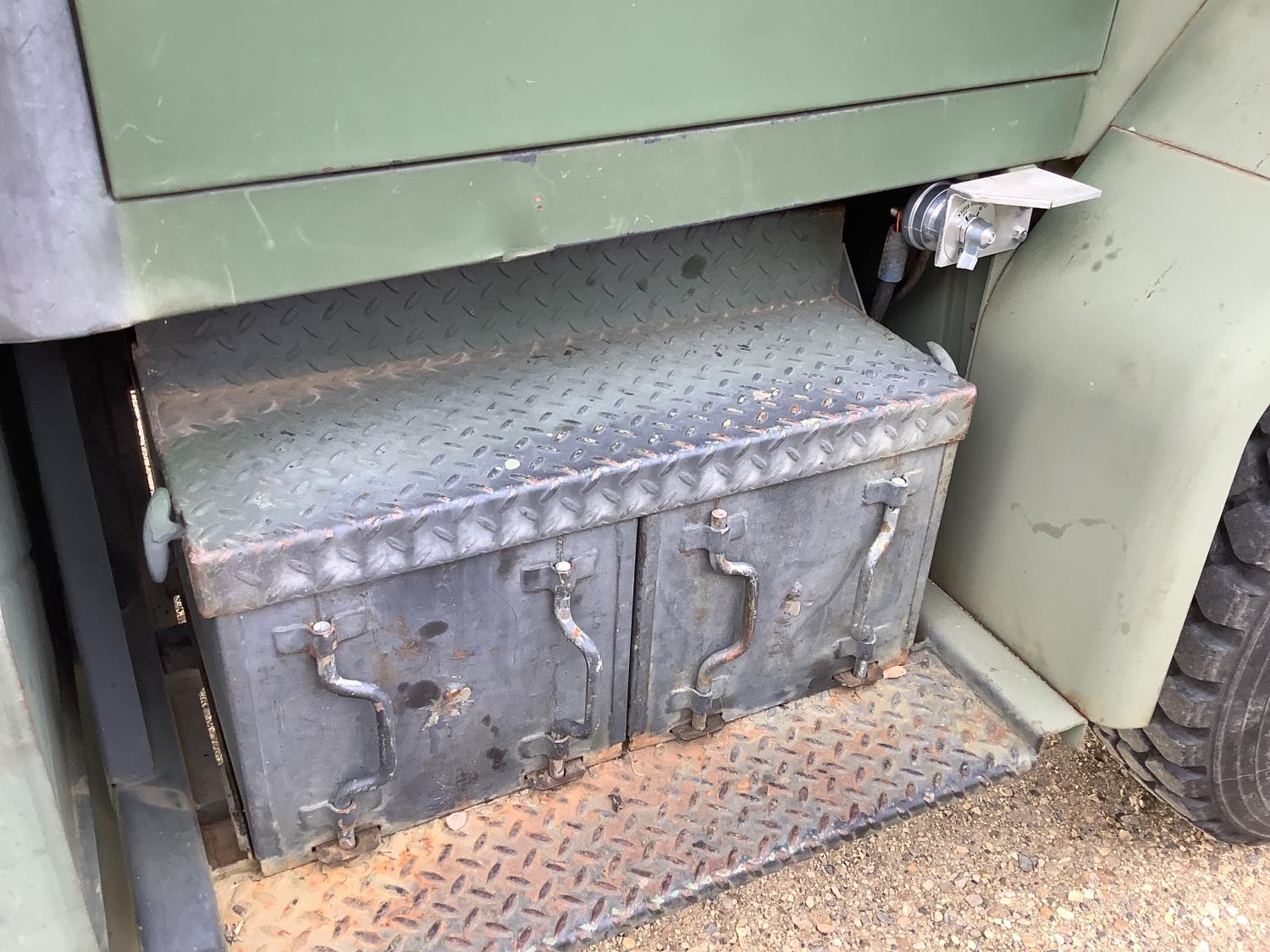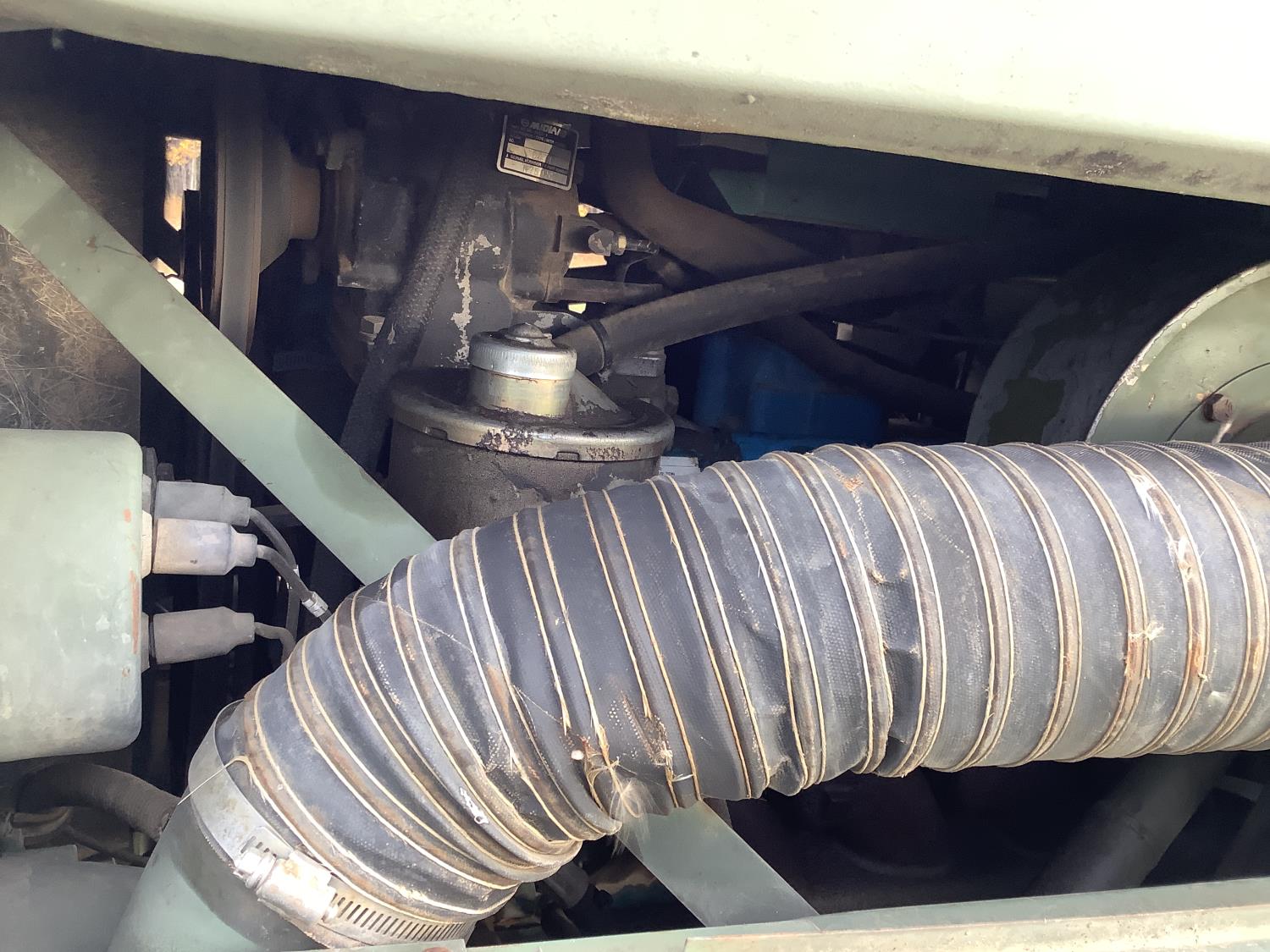 GM 8.2 Fuel squeezer V8 diesel engine, Allison automatic transmission, air over hydraulic brakes, manual park brake, spring suspension, steel box with fold down sides, rear pintle hitch