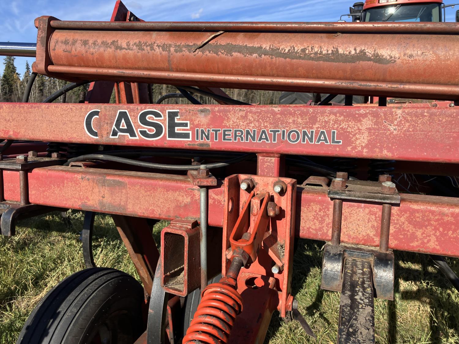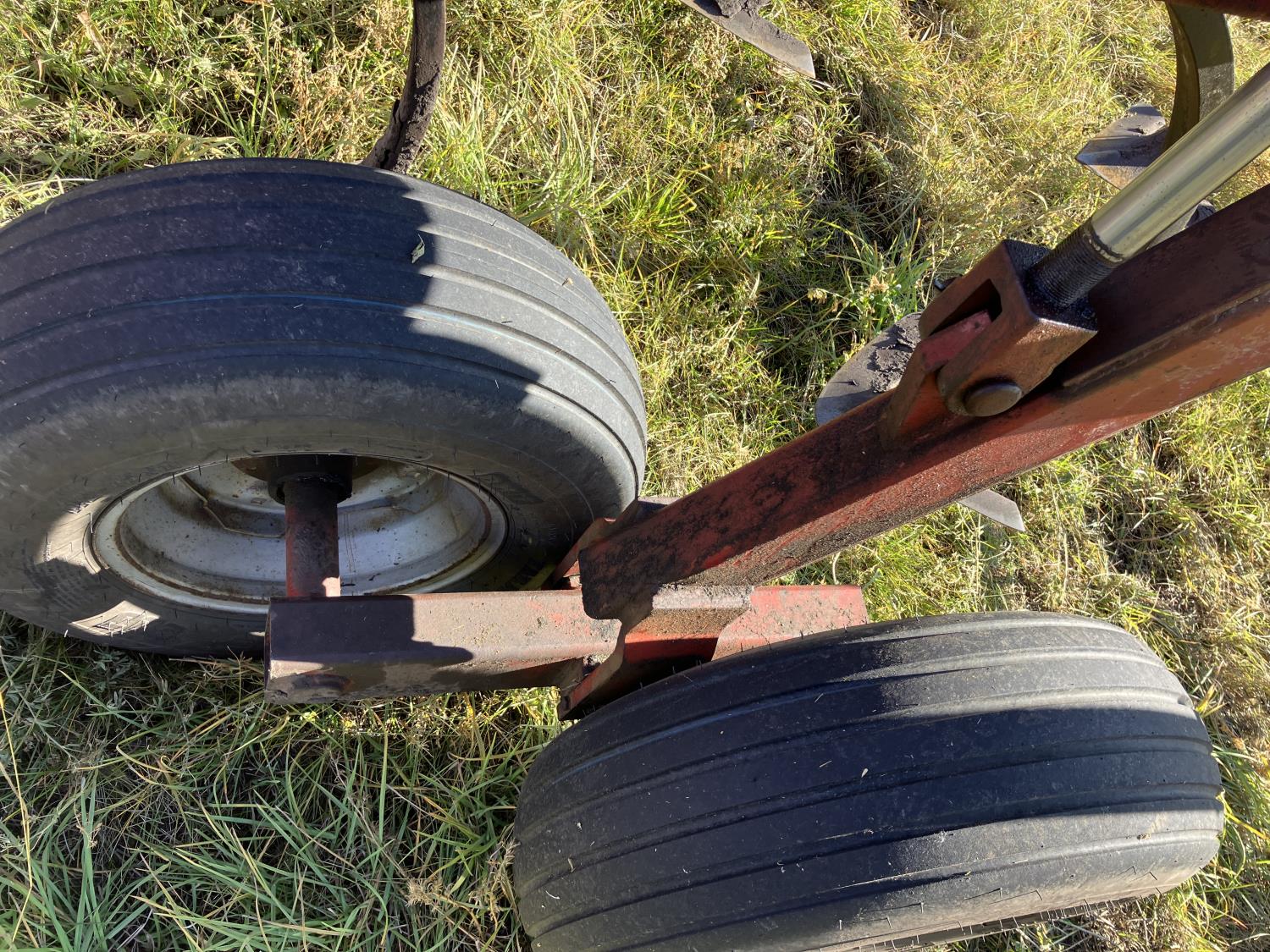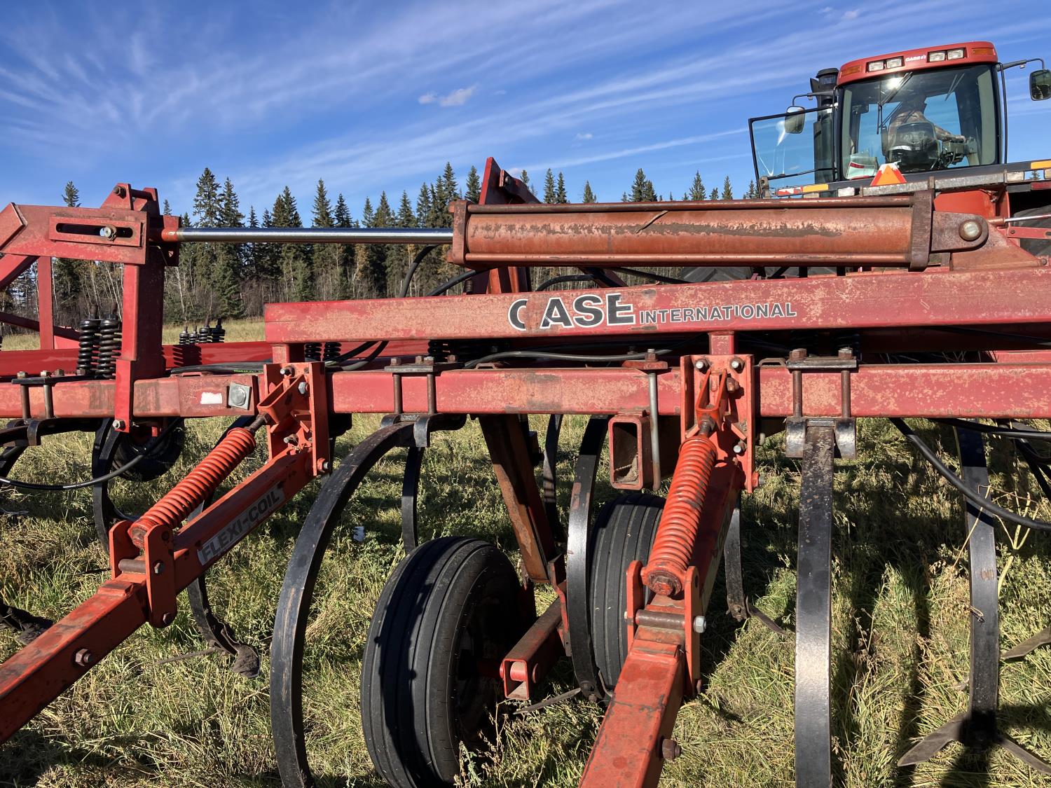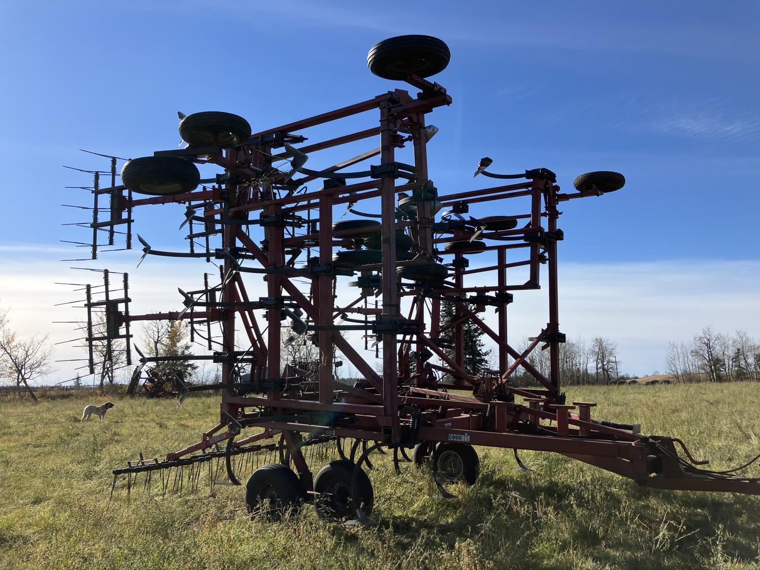 16 inch sweeps, Flexicoil 3 bar spring tooth harrows, walking axles on main frame, walking axles on wings, 16" harrow tines, 11L-15SL main frame tires, 7.60-15 wing tires