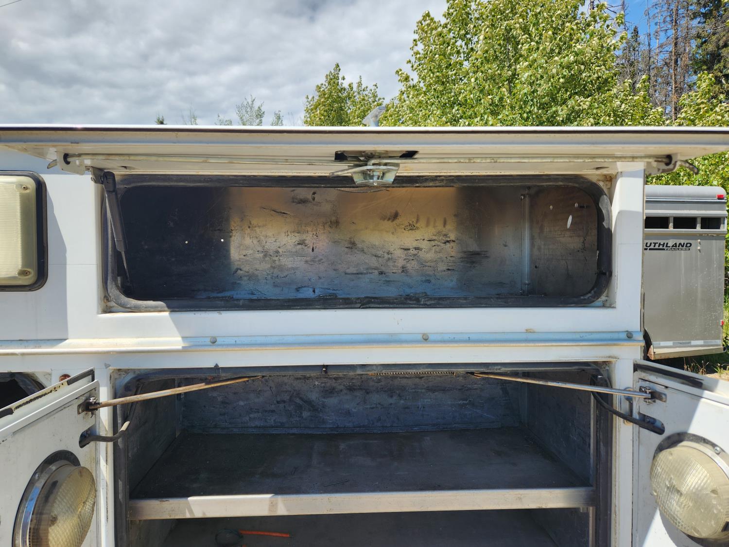 8 ft w X 9 ft l, Frame rails 34 inch w, wheel opening 43.5 inch X 16 inch d