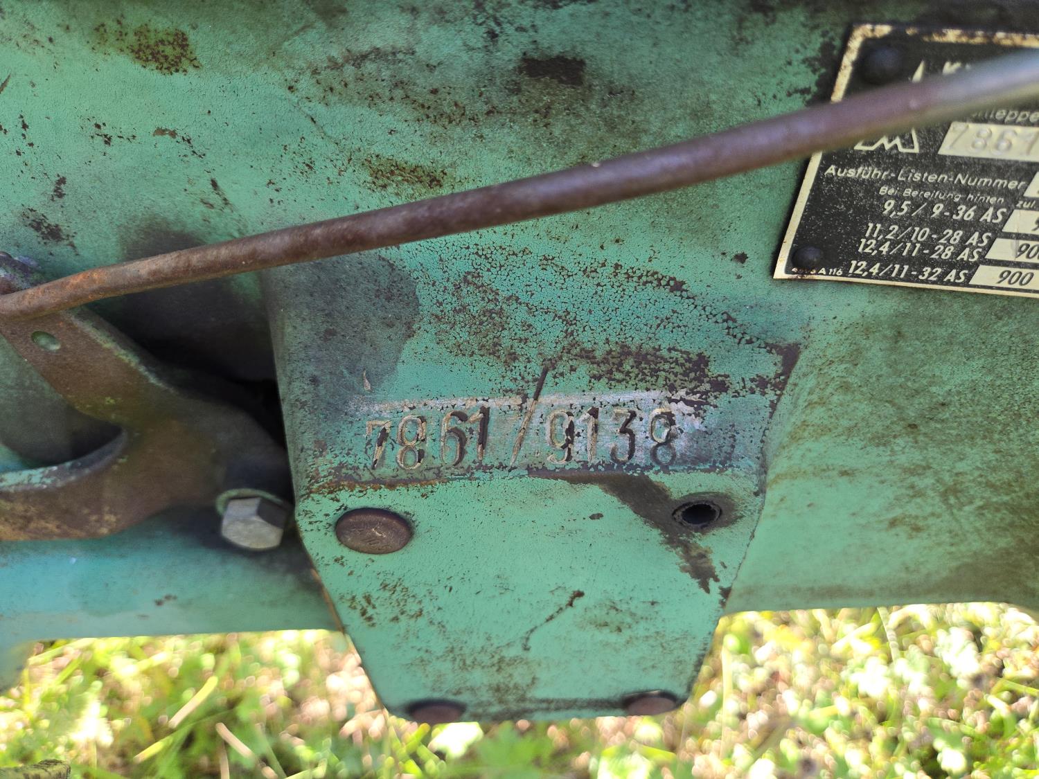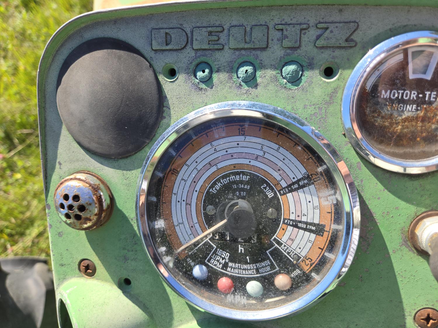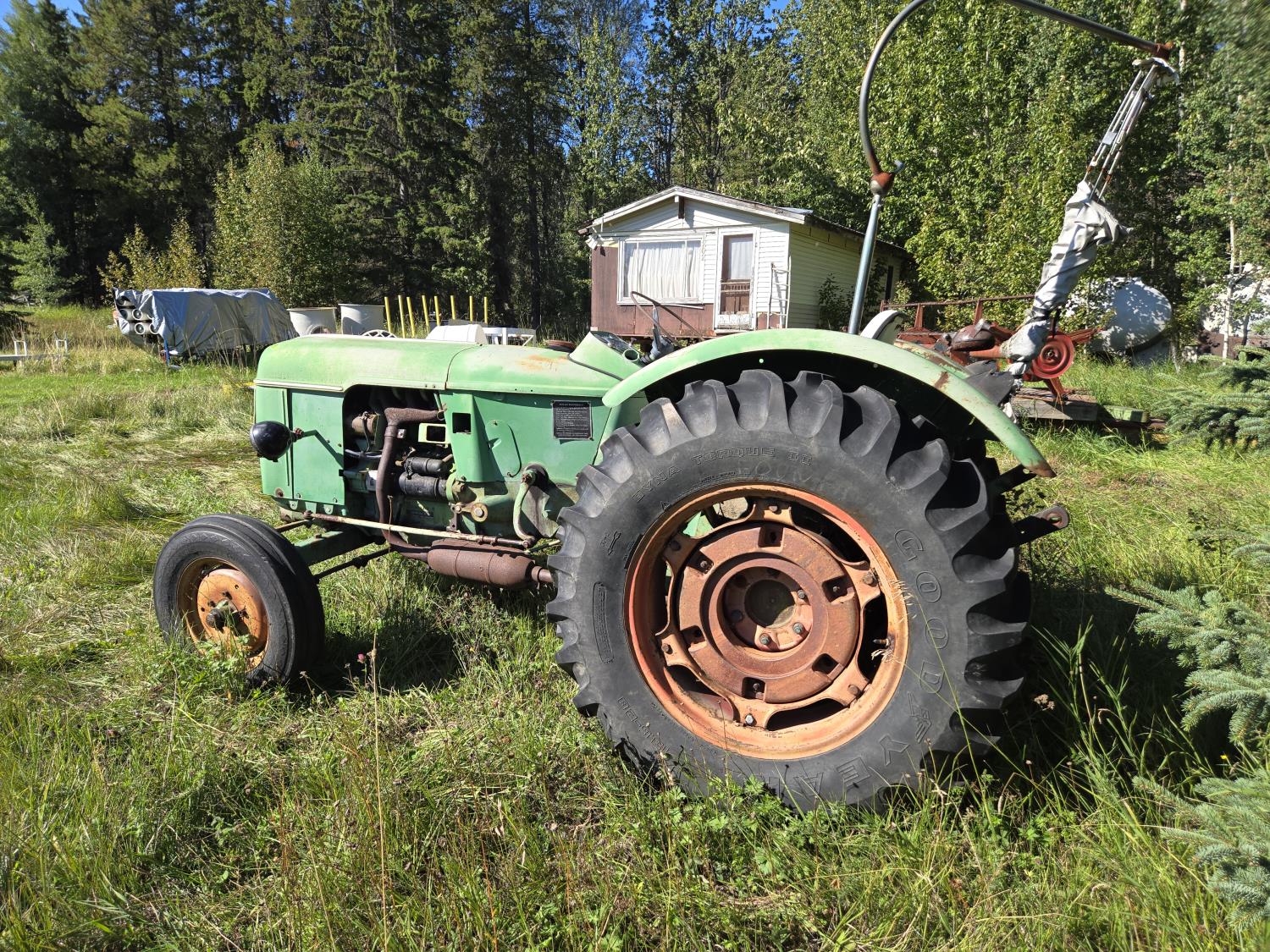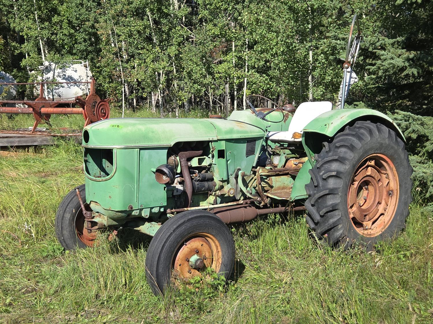 Deutz 2.6 L 3 cylinder 35 HP, diesel engine, 7 speed manual transmission, open station platform, 540 PTO, 3 point hitch, 6.00-16 front tires, 13.6-28 rear tires