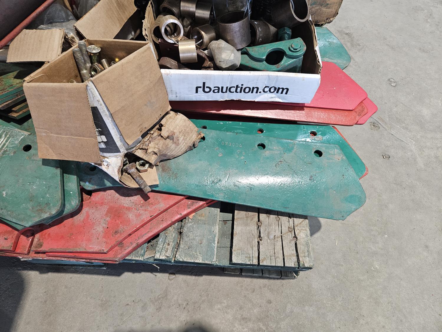 Large quantity of new and used plow parts, mold boards, hubs, blades, bolts, skimmer parts