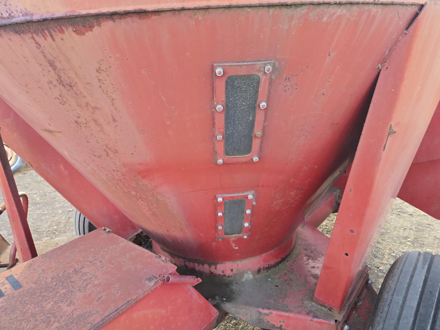 540 PTO, 21 inch hammermill, mechanical drive discharge auger, power bale feeder, supplement hopper, sight glasses, (3) screens, (1) 1/4", (1) 5/8", (1) 1-1/2", 11L-15 tires