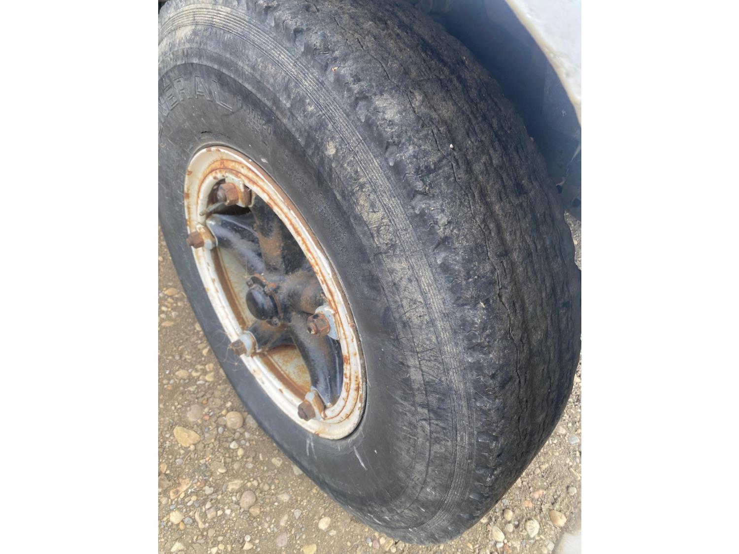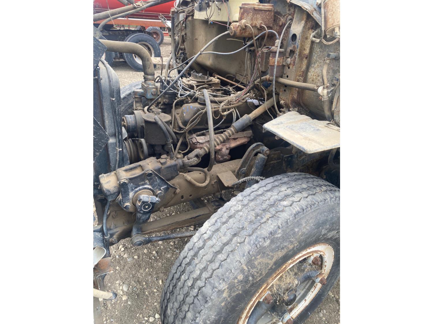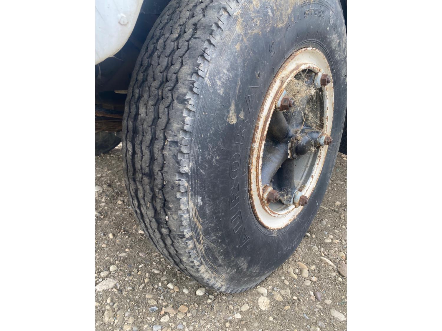 V8 gas engine, 5X2 manual transmission, hydraulic wet kit, 12 ft box, spring suspension, 10R20 tires