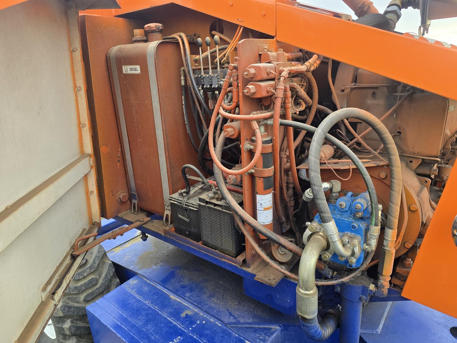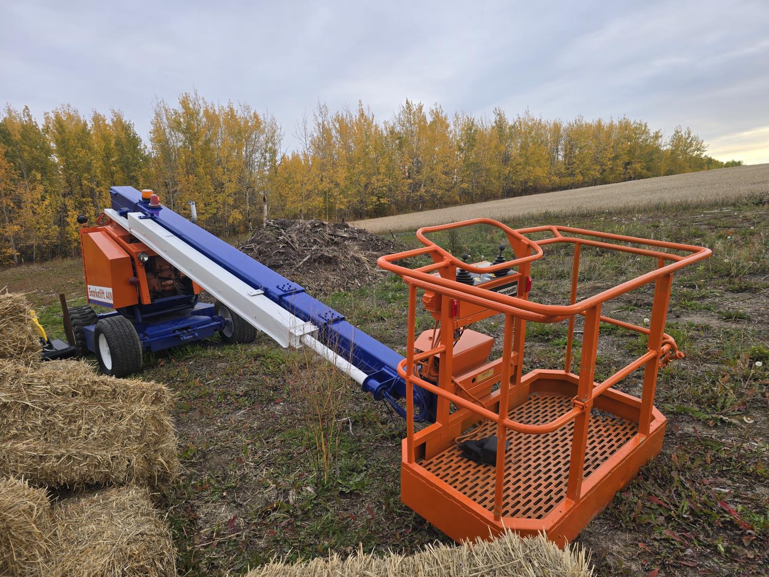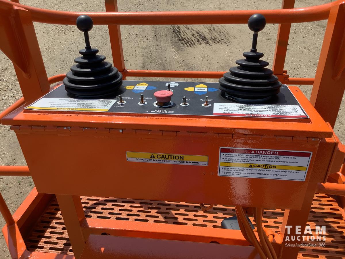 Deutz twin cylinder air cooled diesel engine, maximum lift 40 ft, 30 inch X 60 inch aluminum man basket with all controls to operate unit