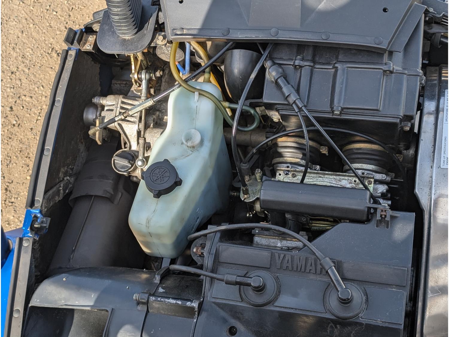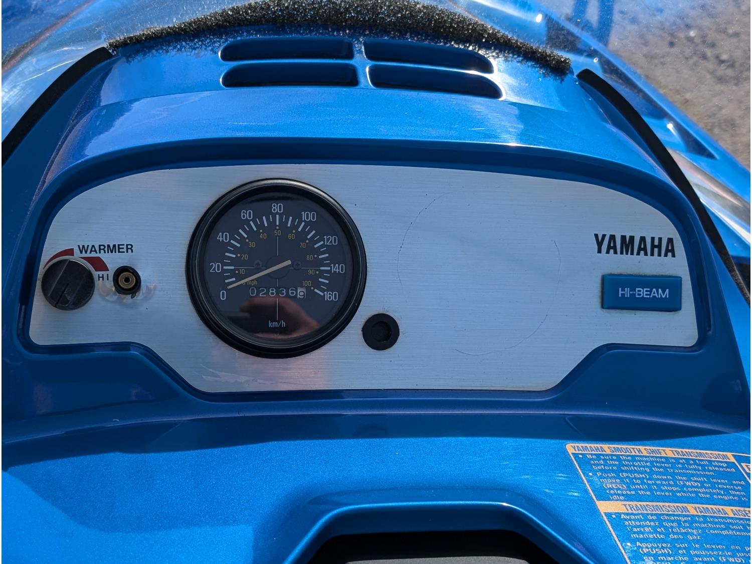 480 cc Yamaha 2 cylinder Fan cooled engine, reverse, windshield, 2 up seat with backrest, 136 inch track, rear tow hitch