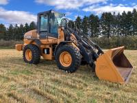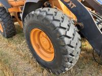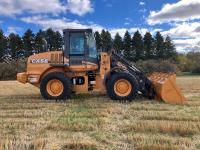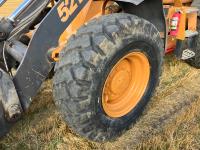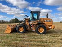 Enclosed cab, 4 speed powershift transmission, 102 inch smooth bucket, hydraulic Q/C coupler, 1 auxiliary hydraulics, Case 4TAA-390 4 cylinder 3.9L turbo charged diesel engine, 2-1/2 yard WBM bucket, battery shut off, ride control, 17.5-25 tires