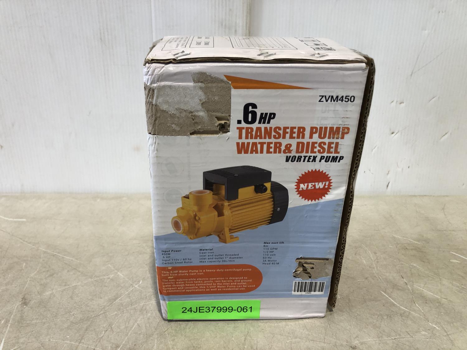 1094 0.6 HP Water & Diesel Transfer Pump (Unused)