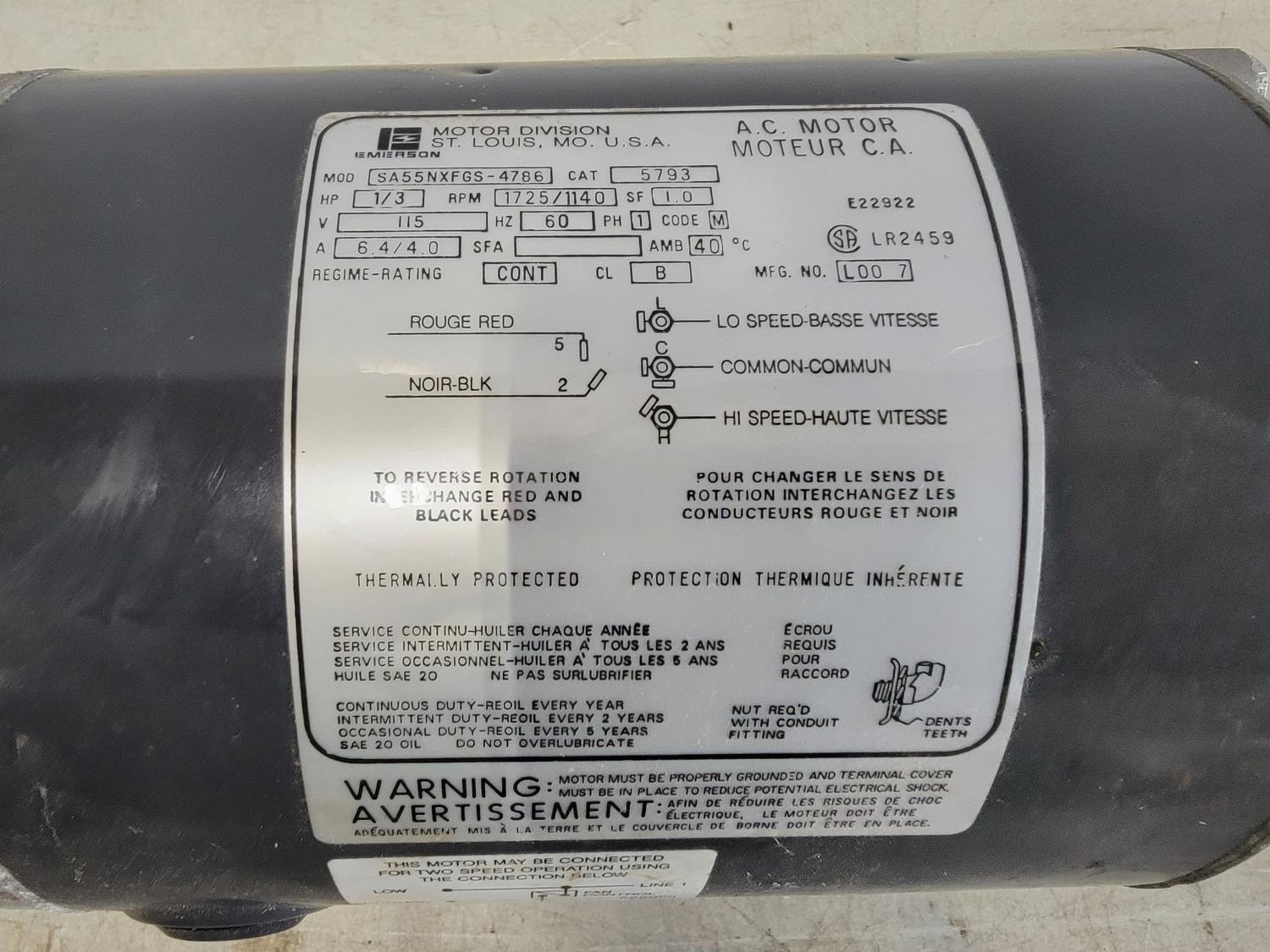 1137 1/3 HP AC Motor (Unused)