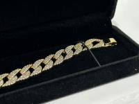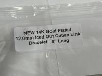 1999 Smartlife 14K Gold Plated 12 mm Iced Out Cuban Link Bracelet - 8 Inch Long (Unused)