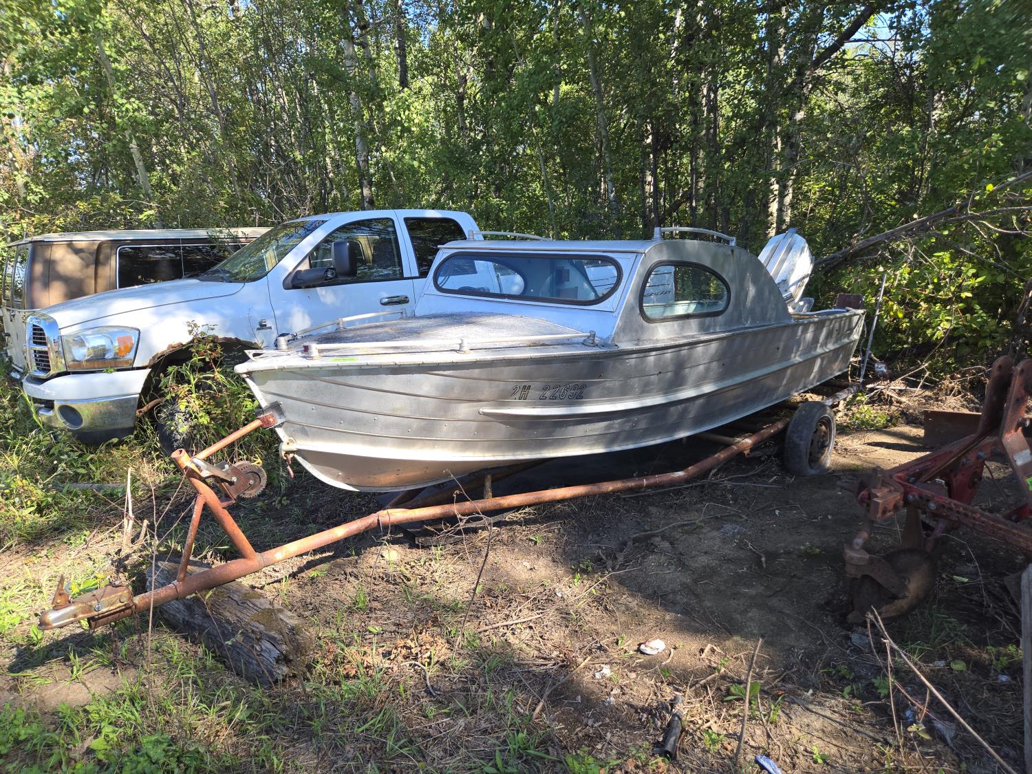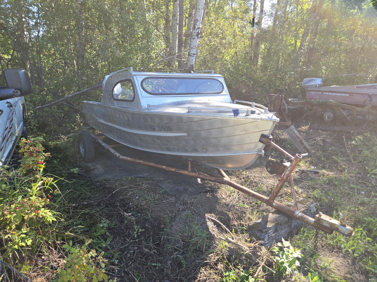 2246 Aeroline Cabinaire 16 Ft Aluminum Boat with Shop Built Trailer (Inoperable)