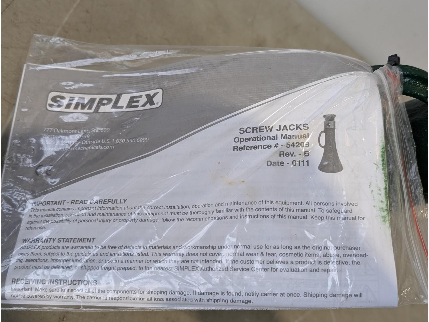 1651 (2) Simplex 20 Ton Screw Jacks (Unused)