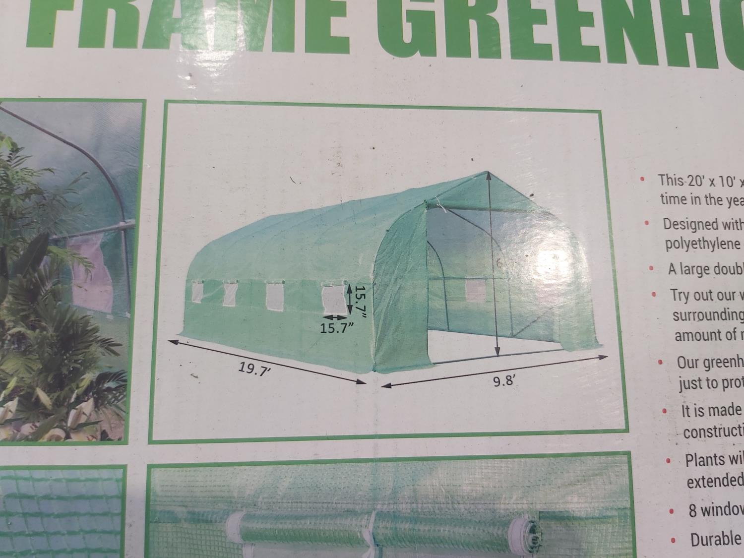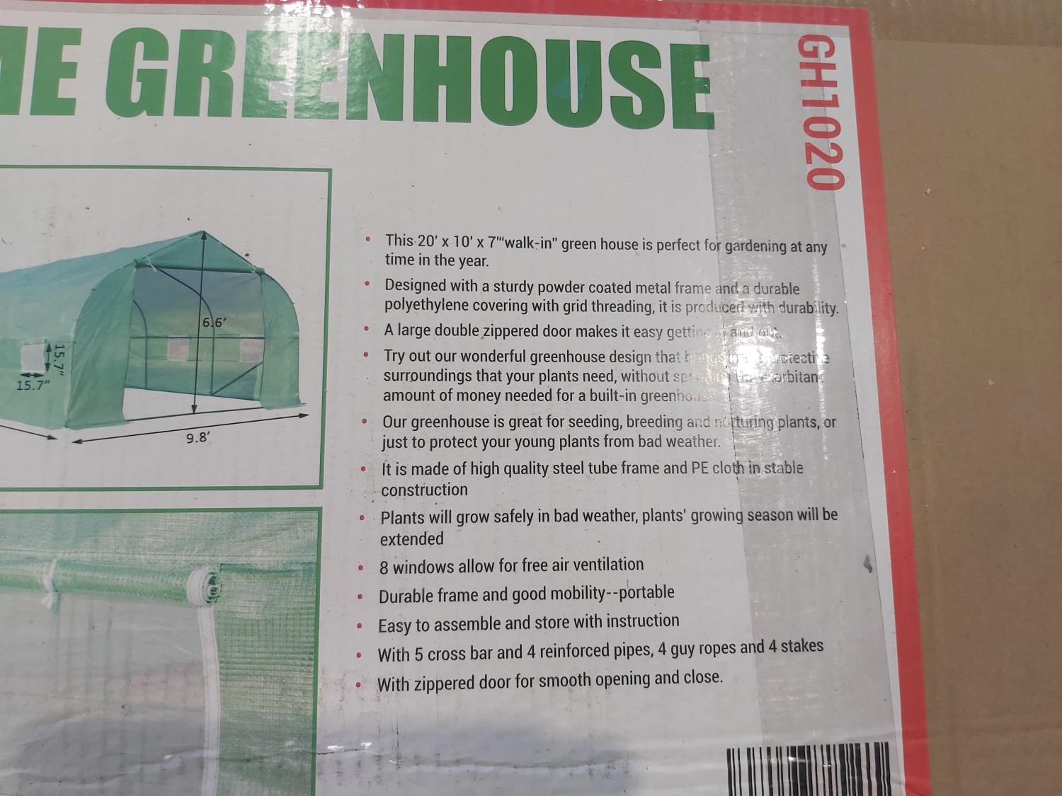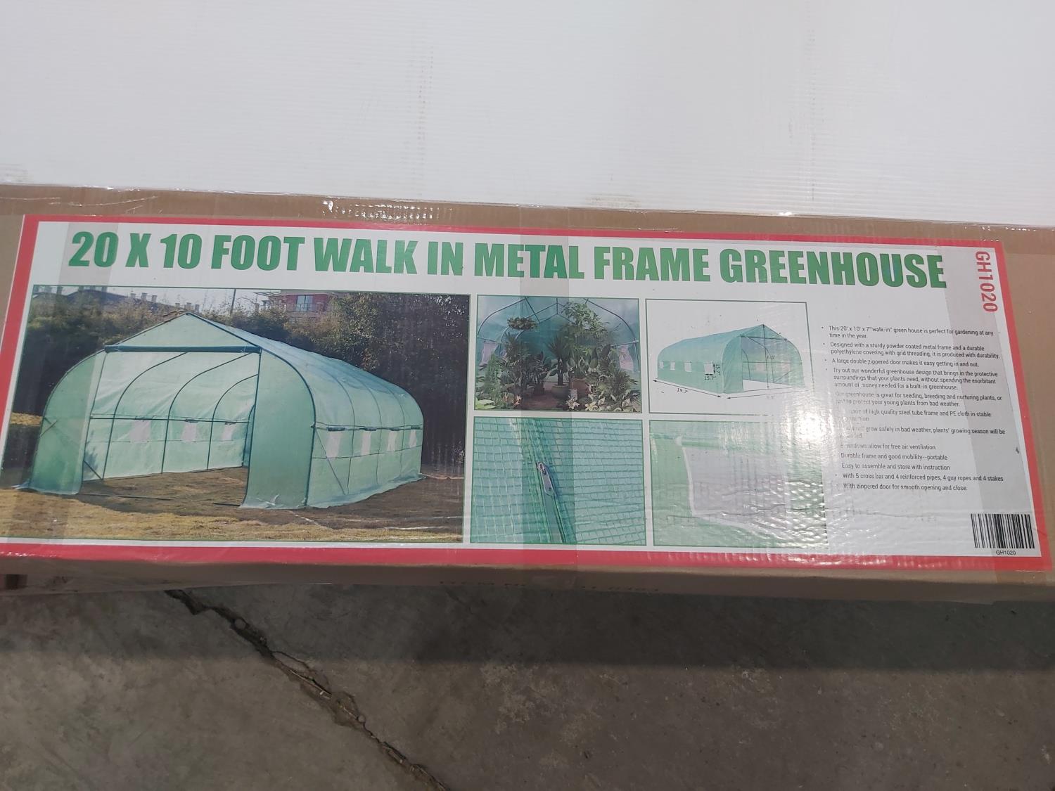 1354 20 Ft X 10 Ft Walk-in Metal Frame Greenhouse (Unused)