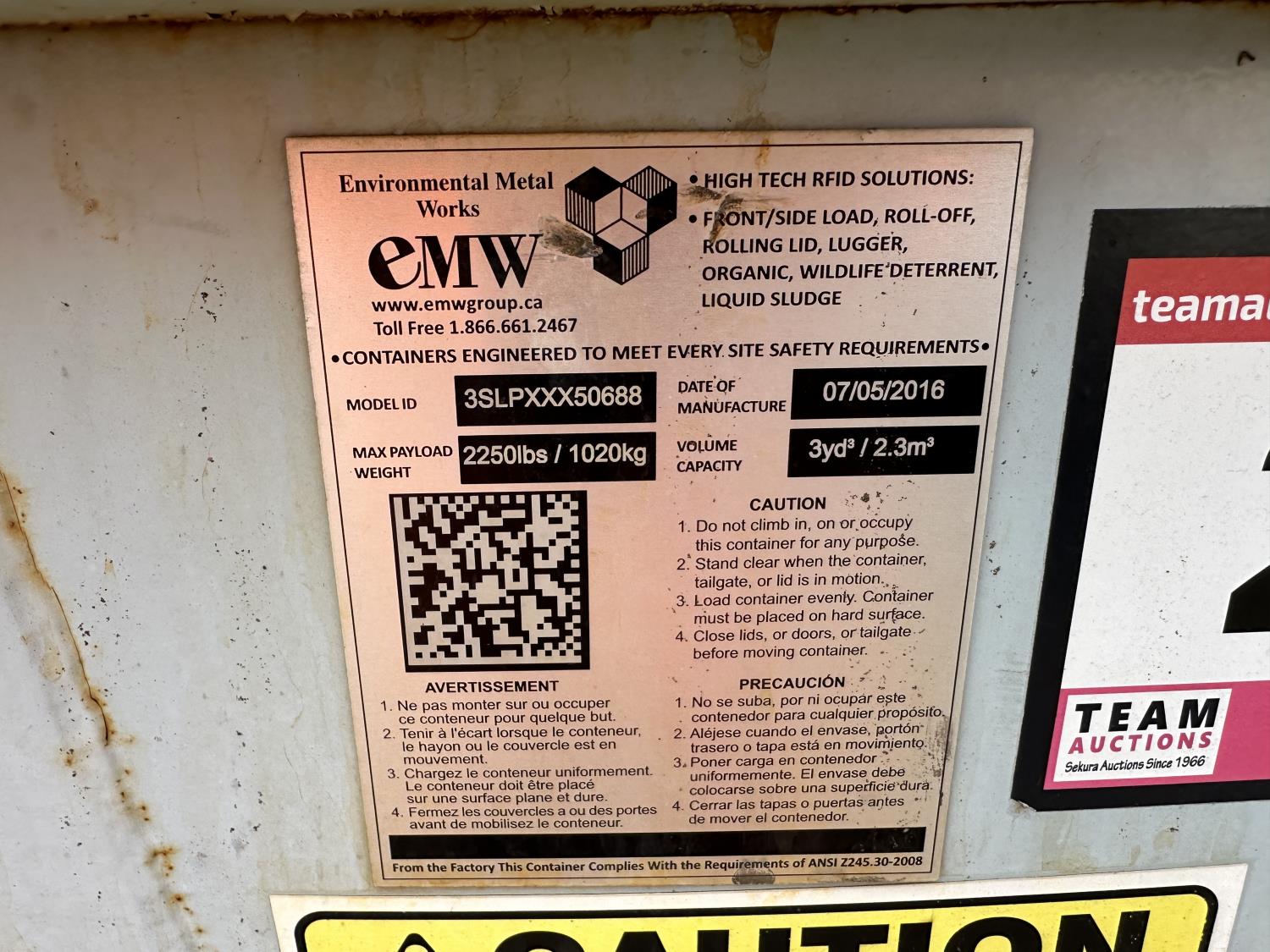 2142 3 Cu Yard Metal Dumpster
