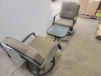 (2) swivel chairs with cushions and small table