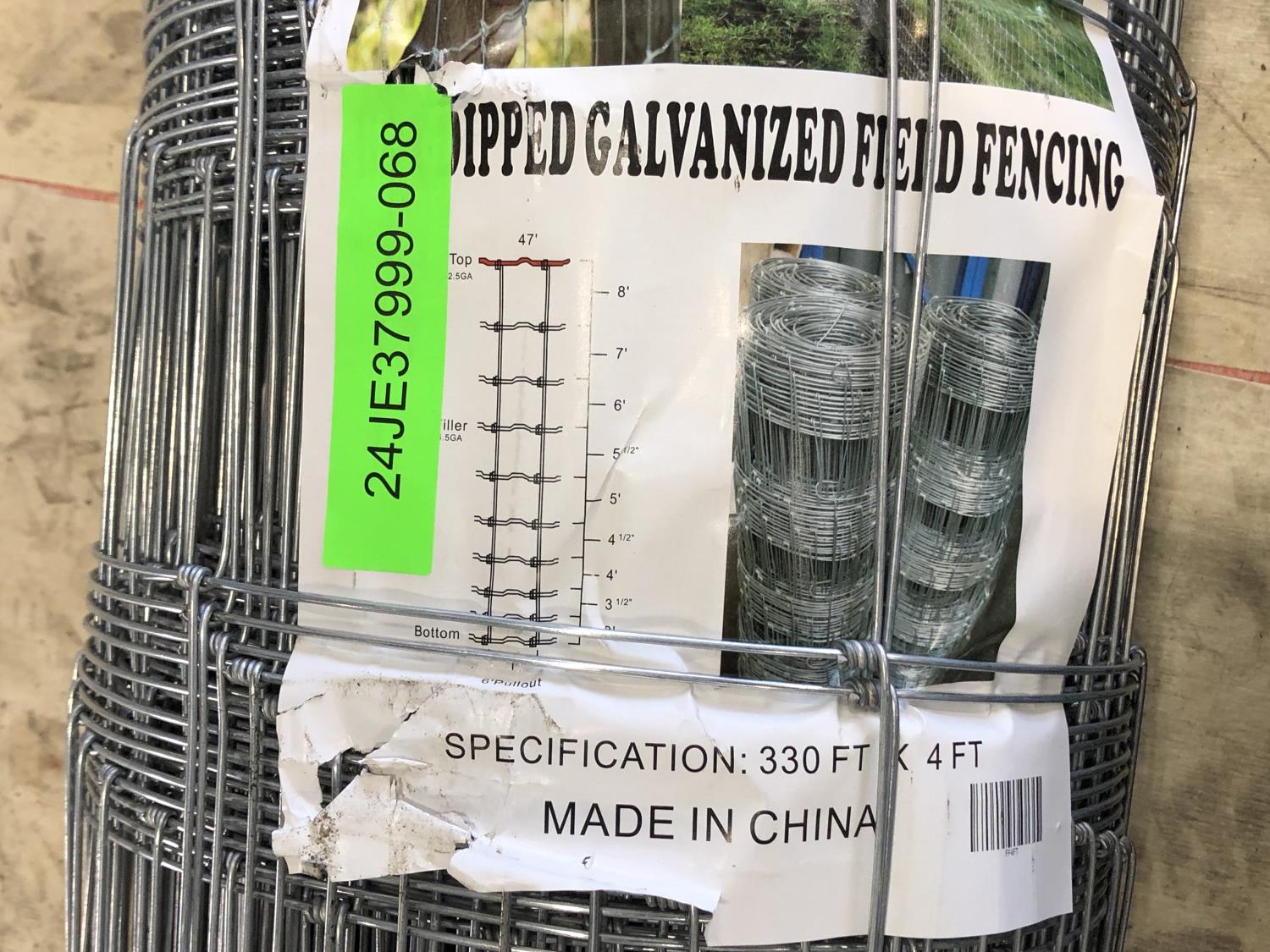 1358 330 Ft X 4 Ft Roll of Dipped Galvanized Field Fencing (Unused)